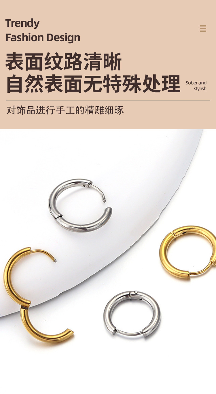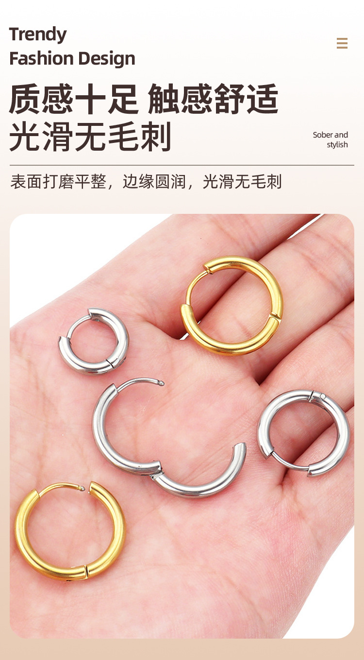 Cross-border European and American round coil earrings fashion simple titanium steel 2.5mm earring men's stainless steel earring spot