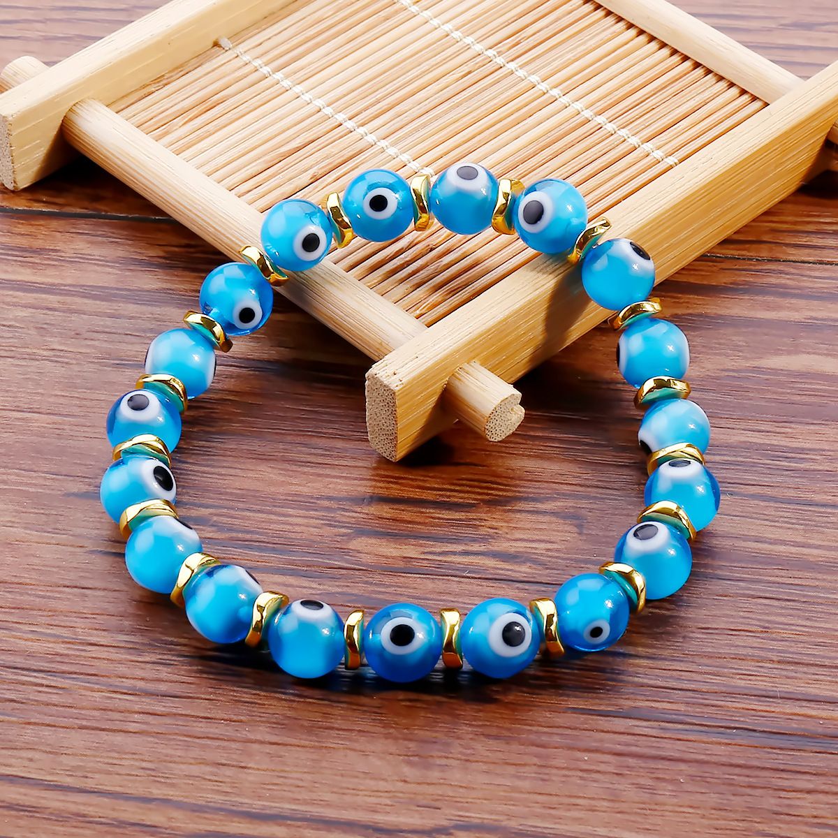 Amazon's Popular Black Gallstone Gold Spacer Glass Bead Bracelet for Women, Cross-Border Trade Devil's Eye Bracelet for Men