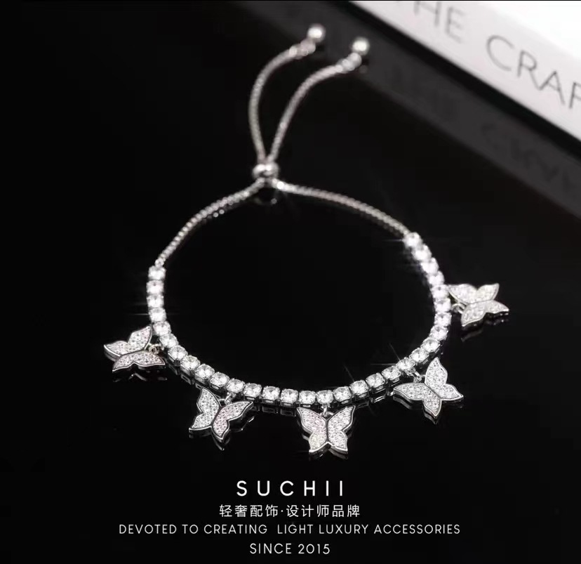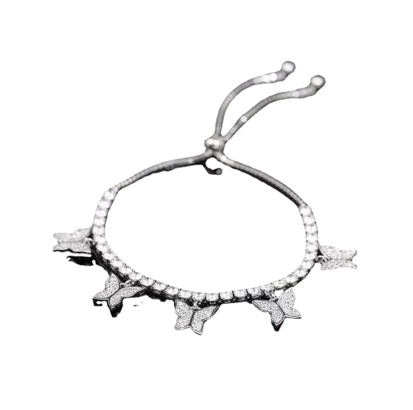 Douyin Same Style Multiple Butterfly Bracelet Light Luxury Niche Micro-inlaid Zircon Immortal Style Butterfly Bracelet with Pull and Adjust