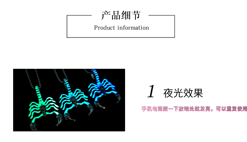 New Trendy Men's Handsome Retro Scorpion King Luminous Pendant Versatile Personalized Transfer Boyfriend Gift Men's Necklace