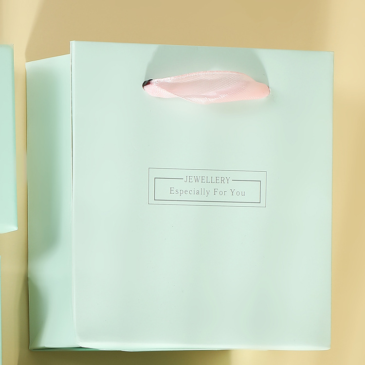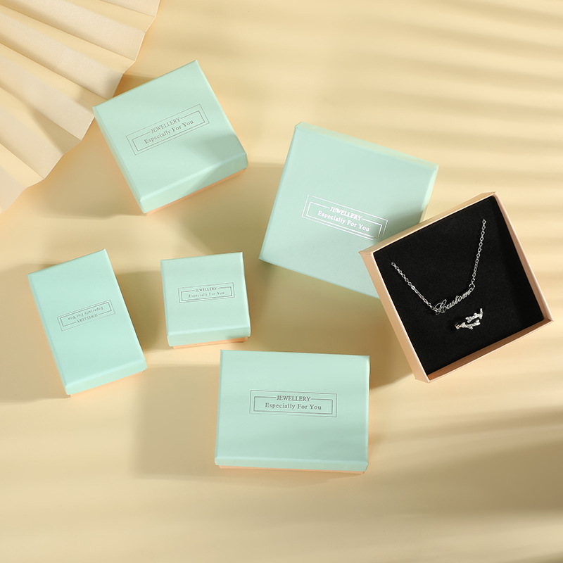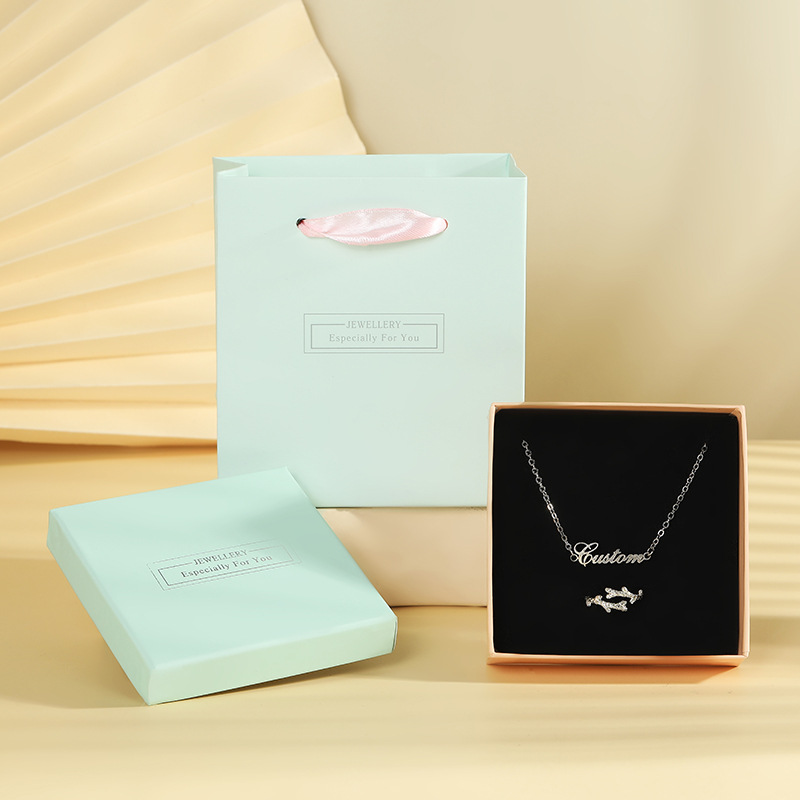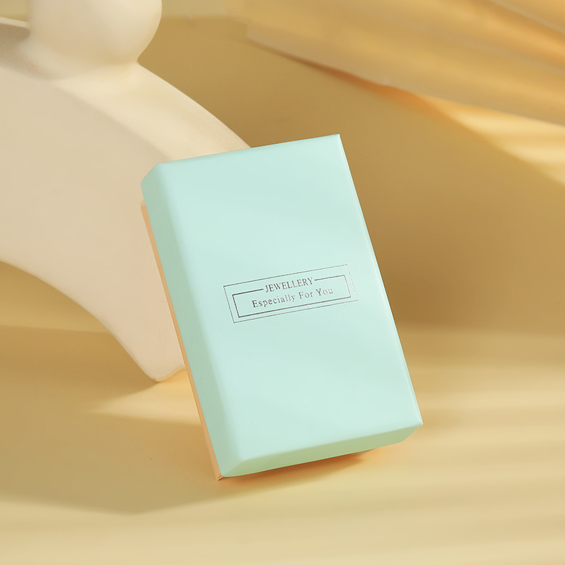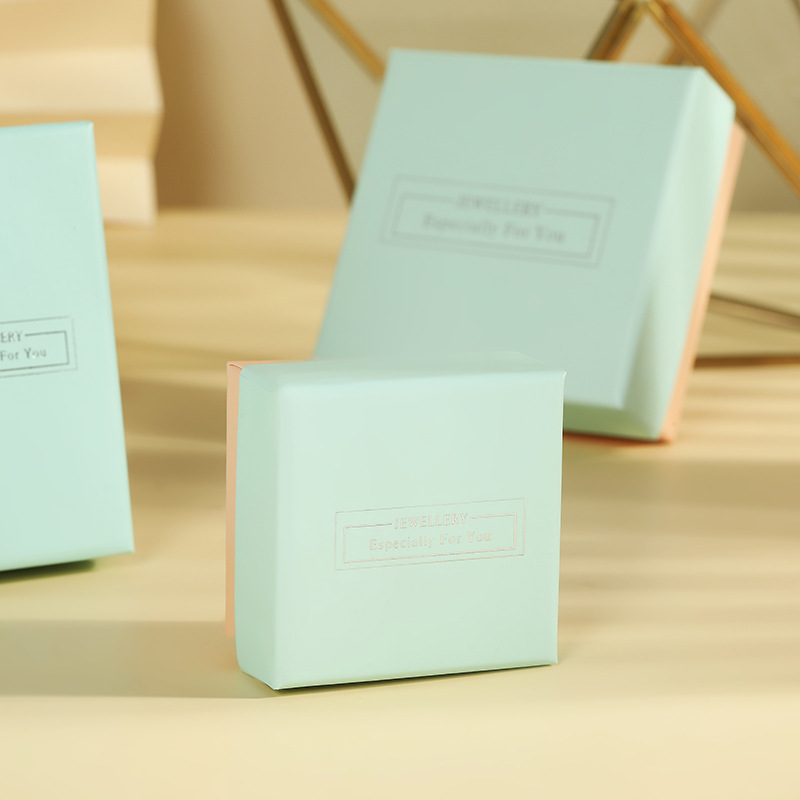 Turquoise Jewelry Paper Box with Portable Paper Bag Heaven and Earth Cover Stamping Word Ring Packaging Box Earrings Bracelet Jewelry Box