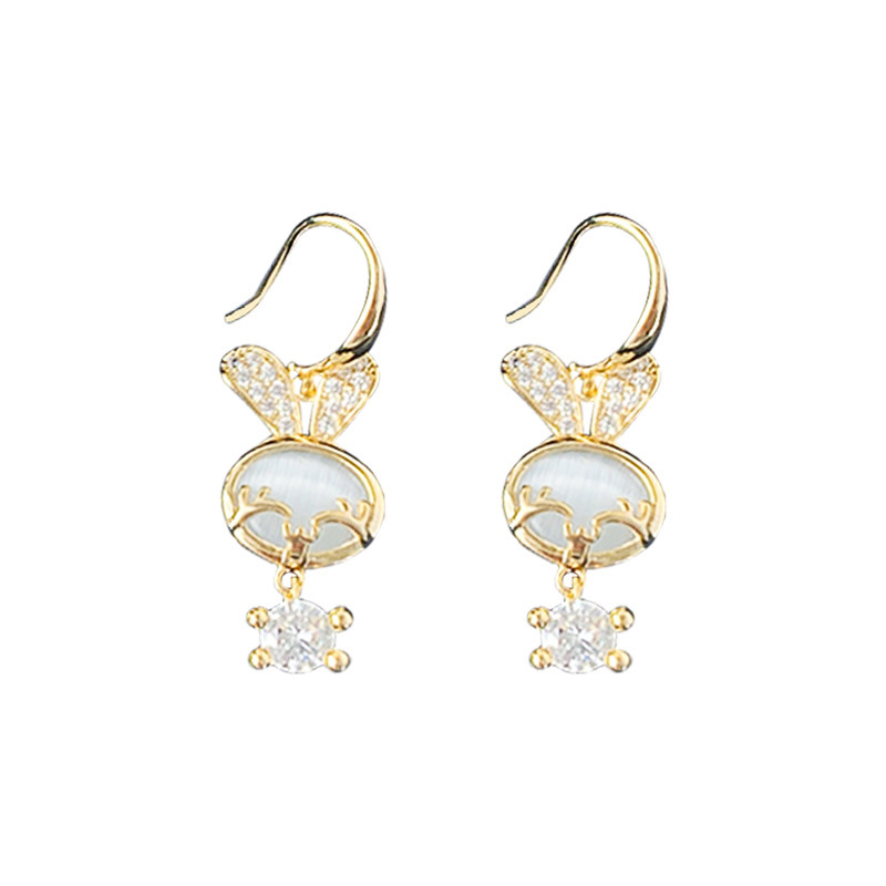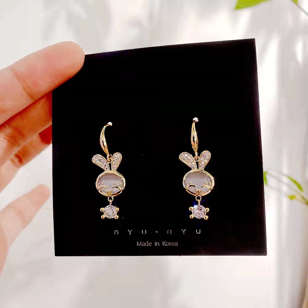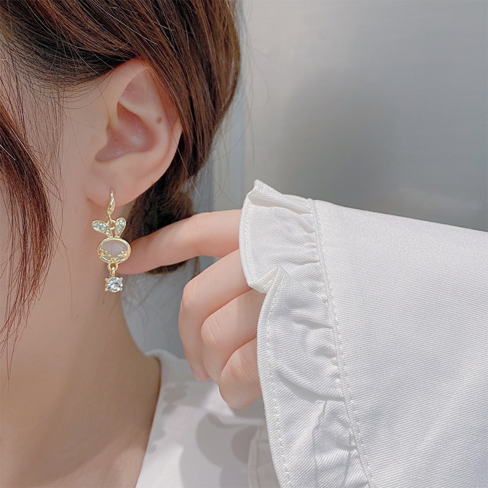 New Cat's Eye Stone Bunny Gentle Cute Exquisite Diamond Earrings Korean Design Sense Sweet Instagram Earrings Trendy