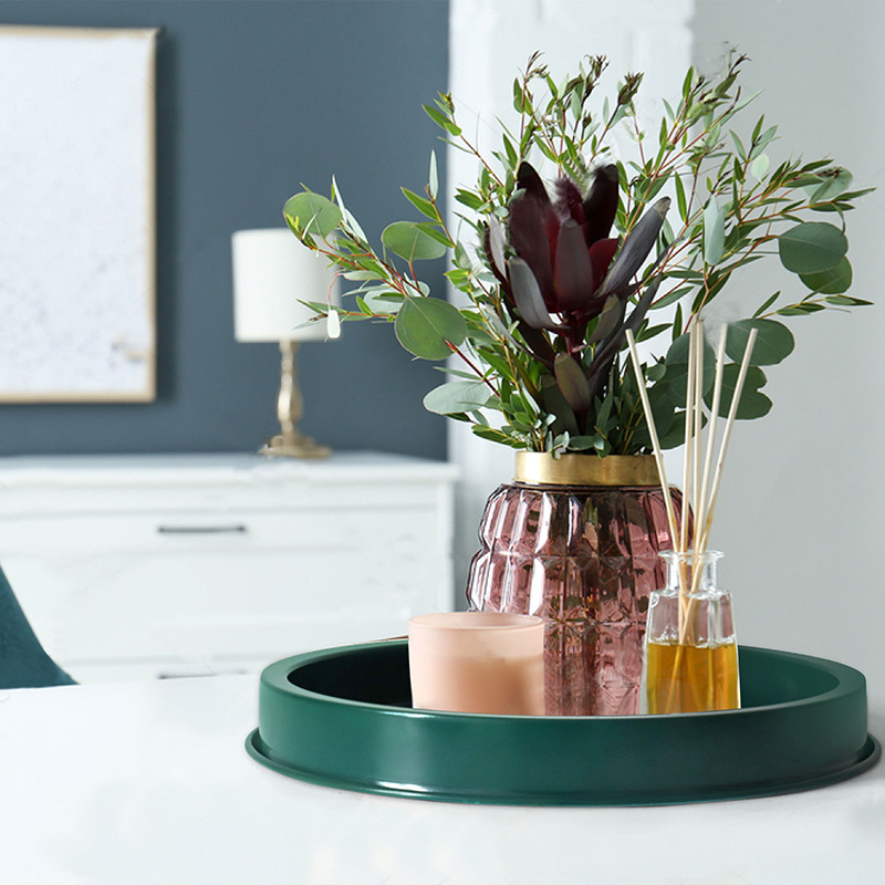 跨境北欧ins风简约圆形收纳盘铁艺加厚底盘化妆品首饰托盘摆件
