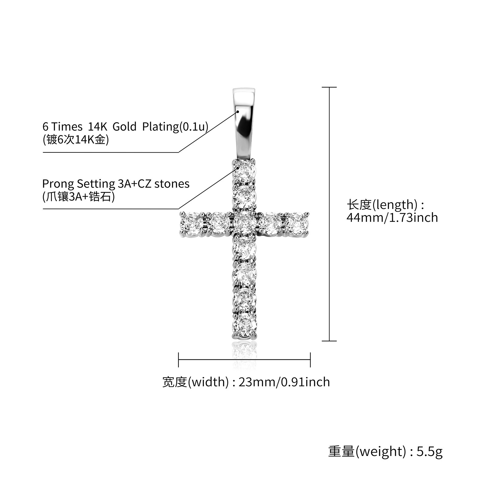 European and American hip-hop color-retaining plated Ma Siwei with colored diamond cross pendant necklace men's and women's rap simple accessories