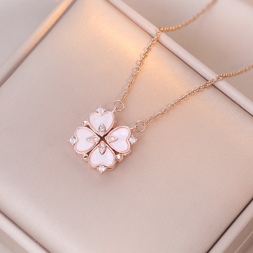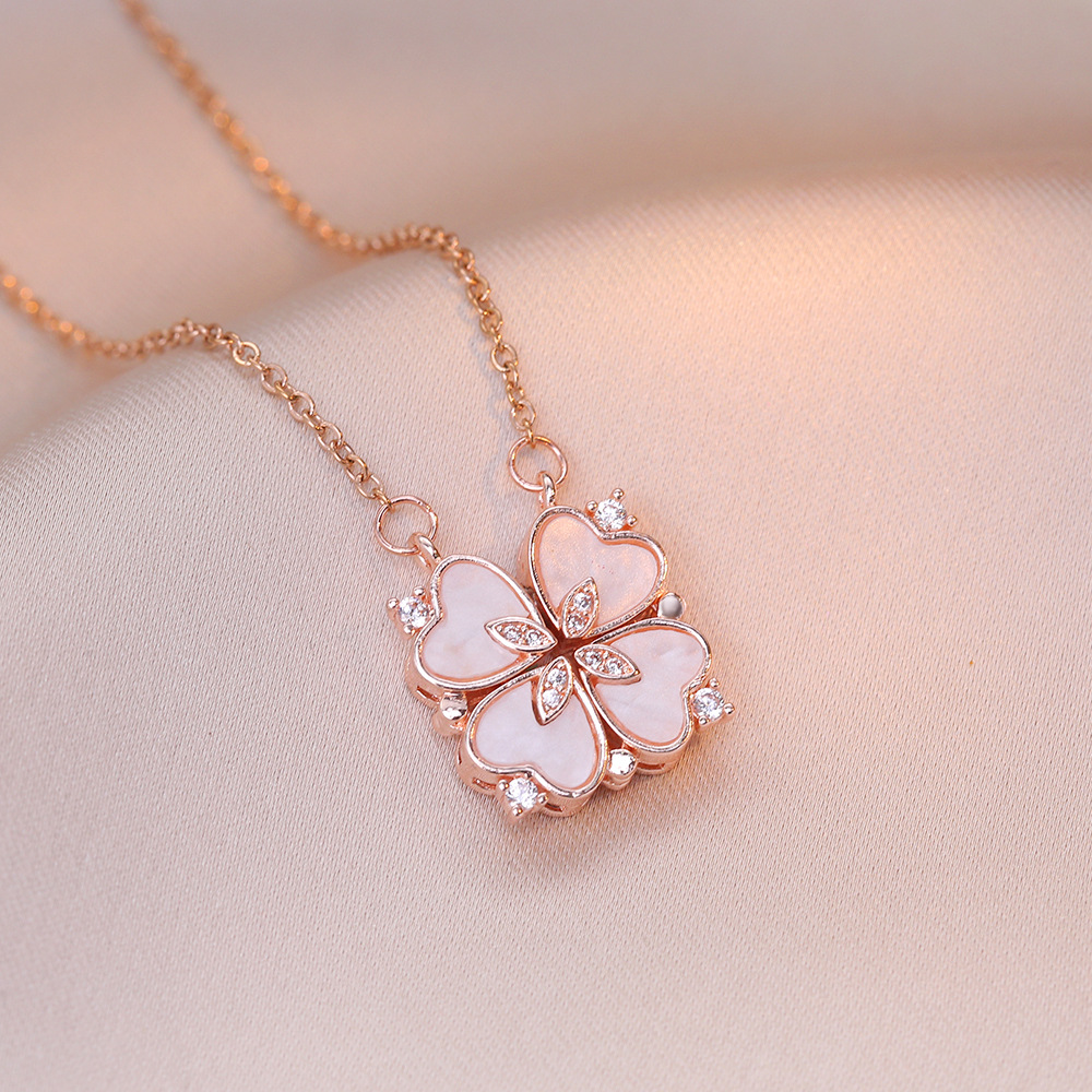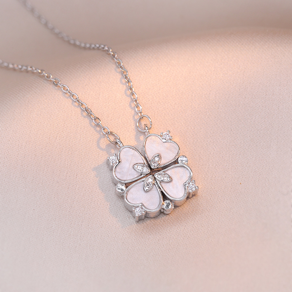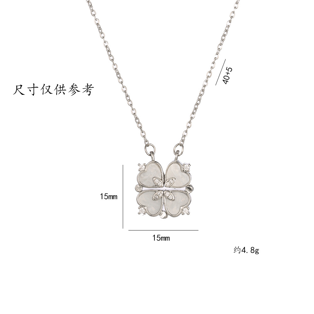 Necklace Female White Fritillaria Four-leaf Zircon Live Fashion Multi-wear Method Love Clavicle Chain South Korea Temperament Internet Celebrity Jewelry