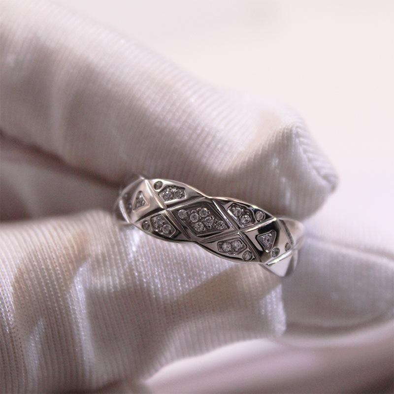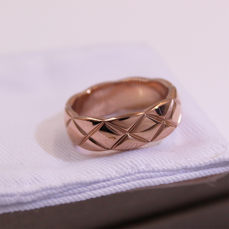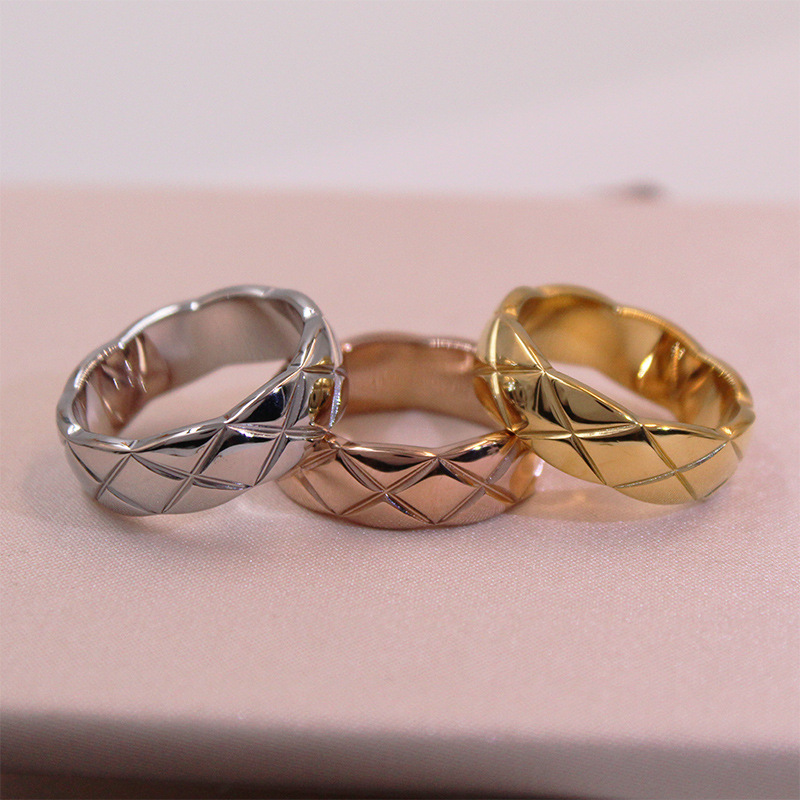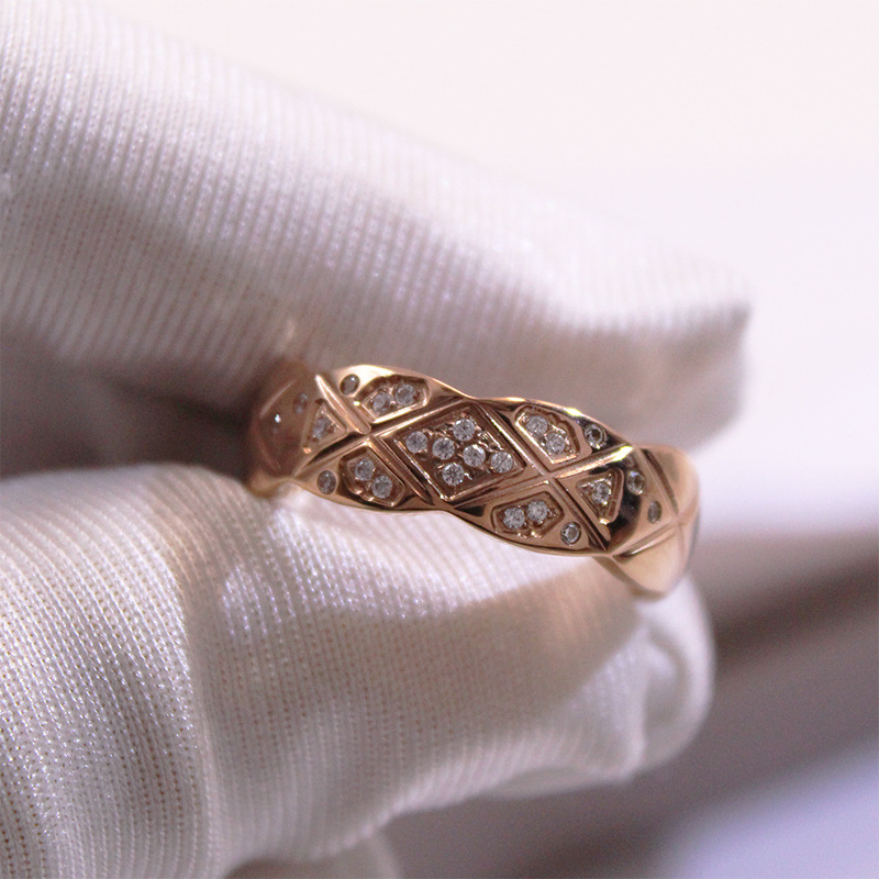 Classic Small Fragrant Style Quilted Pattern Ring, Wide and Narrow Version, Diamond-Encrusted Glossy Ins Cold Style Fashionable Stylish Couple Ring