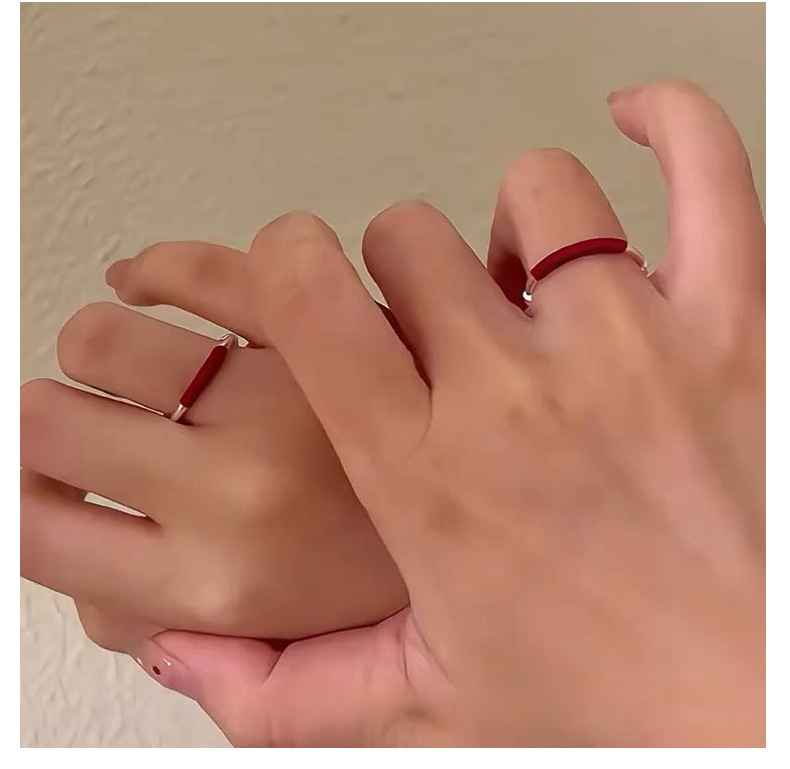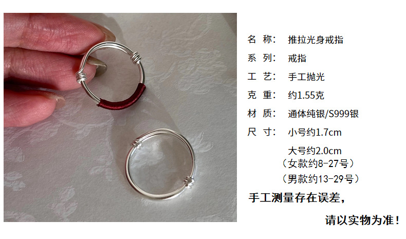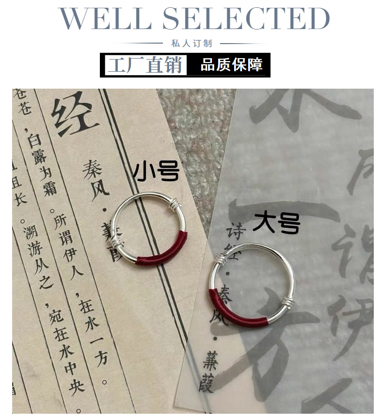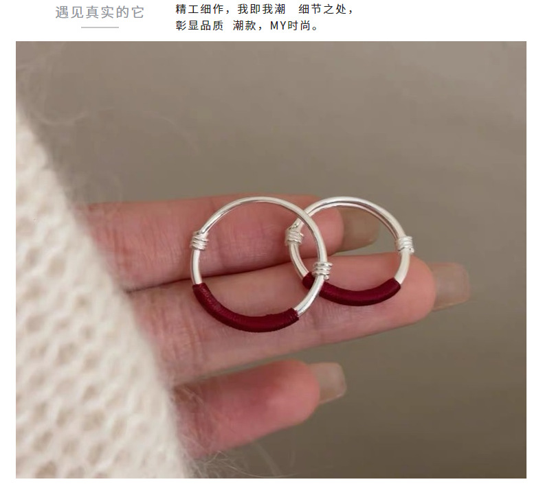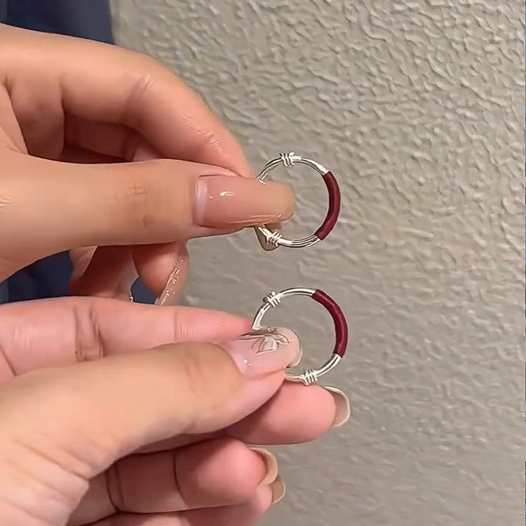 S999 Foot Silver Push-pull Red Rope Couple Ring Light Luxury Simple All-match Finger Ring Fashionable Gloomless Push-pull Ring for Women