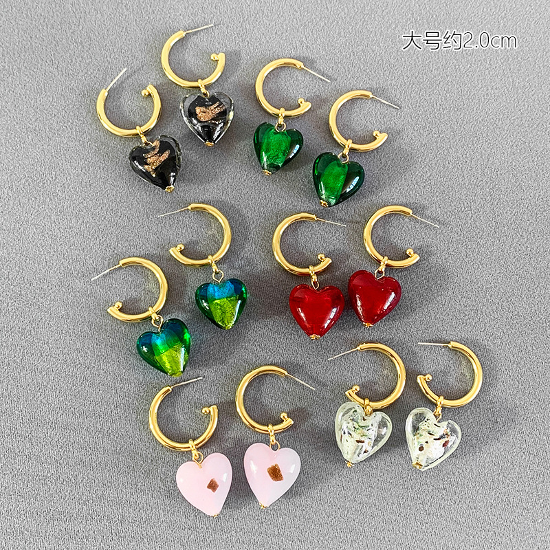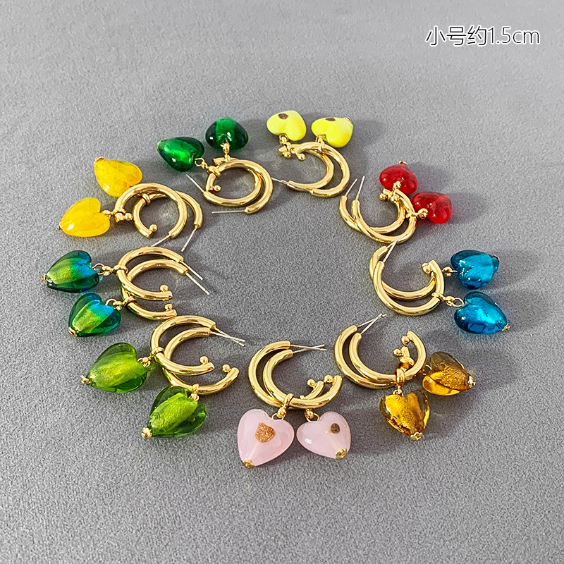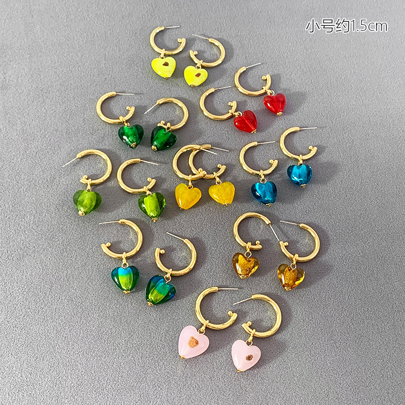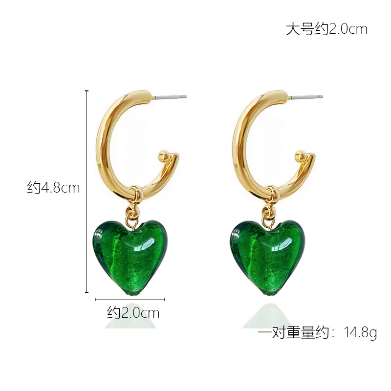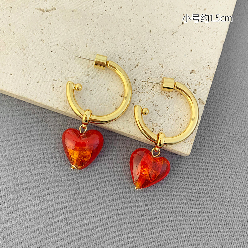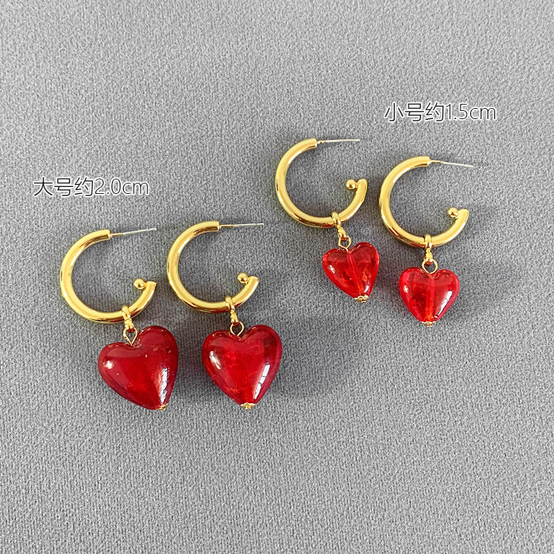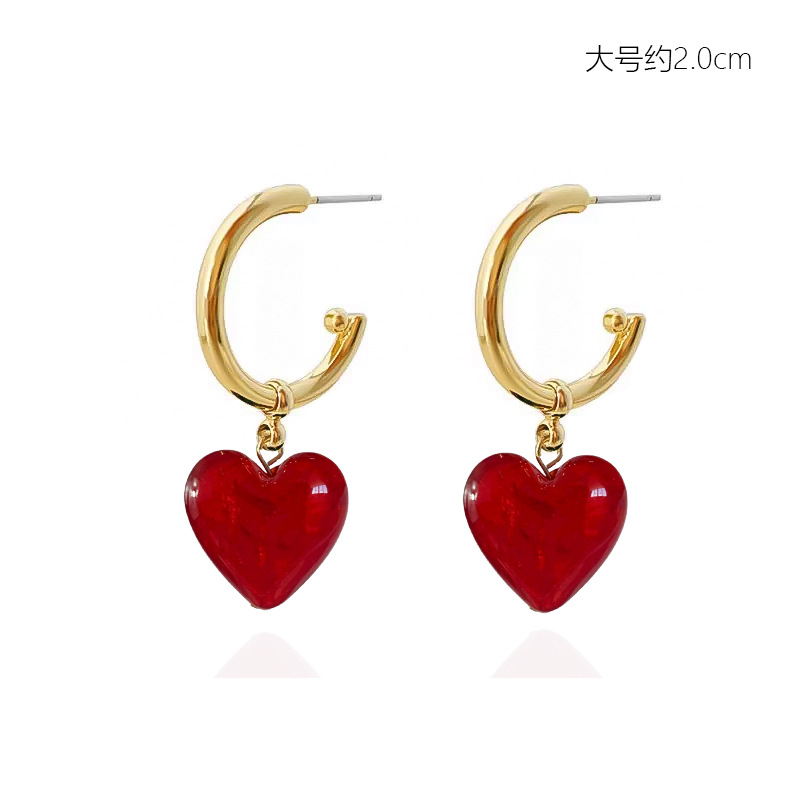 Color: D031 heart red love earrings same style ears small 1.5cm