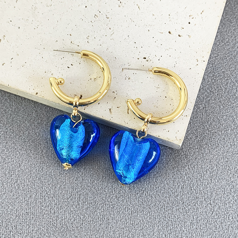 Color: D031 ocean blue heart dream earrings large 2.0cm