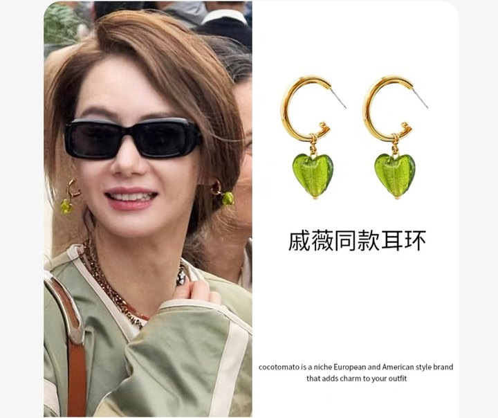 Color: D031 emerald green qiyu earrings qi wei same style small 1.5cm