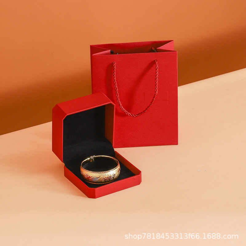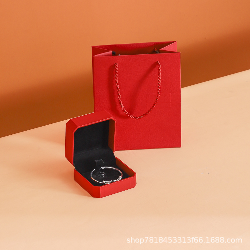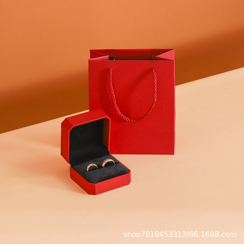 Specifications and models: Octagonal ring box (black bottom can hold earrings) + bag; with label
