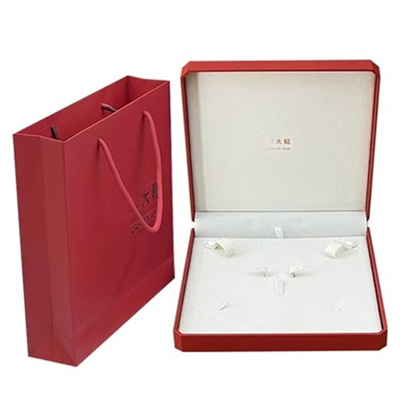 Specifications and models: (white background) large octagonal necklace box + bag; with logo