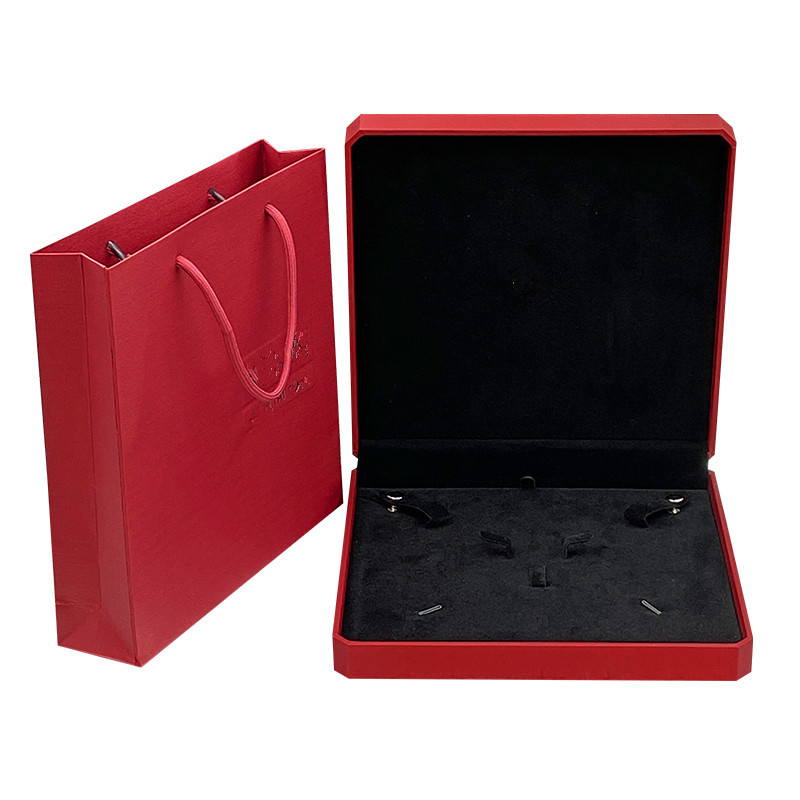 Specifications and models: Large octagonal necklace box (black bottom) + bag; with label