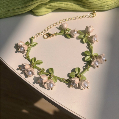 白色铃兰花耳环+手链+项链~超仙森系春季新款耳钉少女锁骨链耳夹