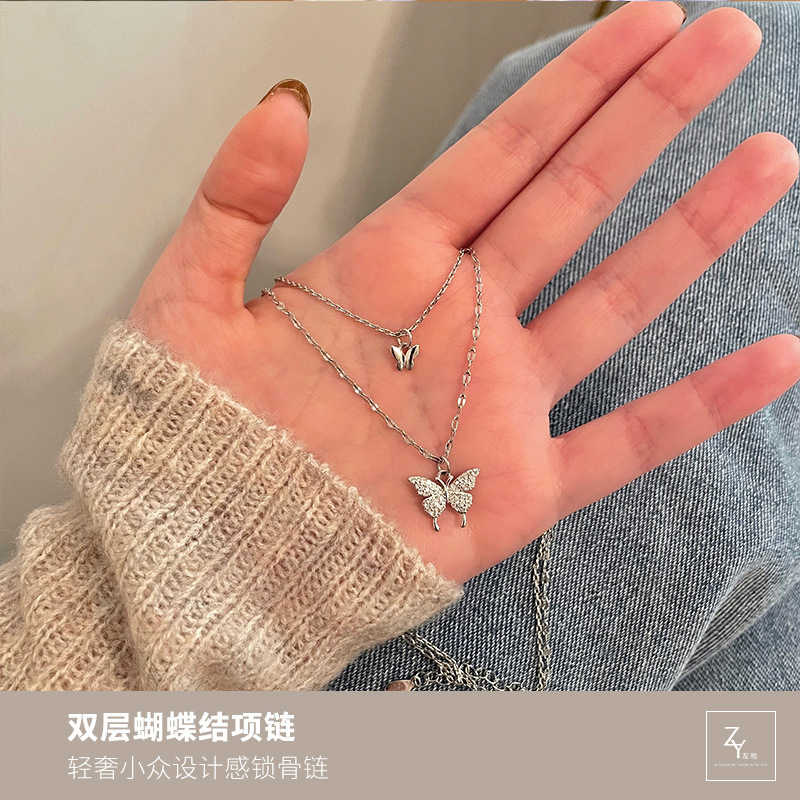 Color: Stainless Steel Double Layer Butterfly Necklace