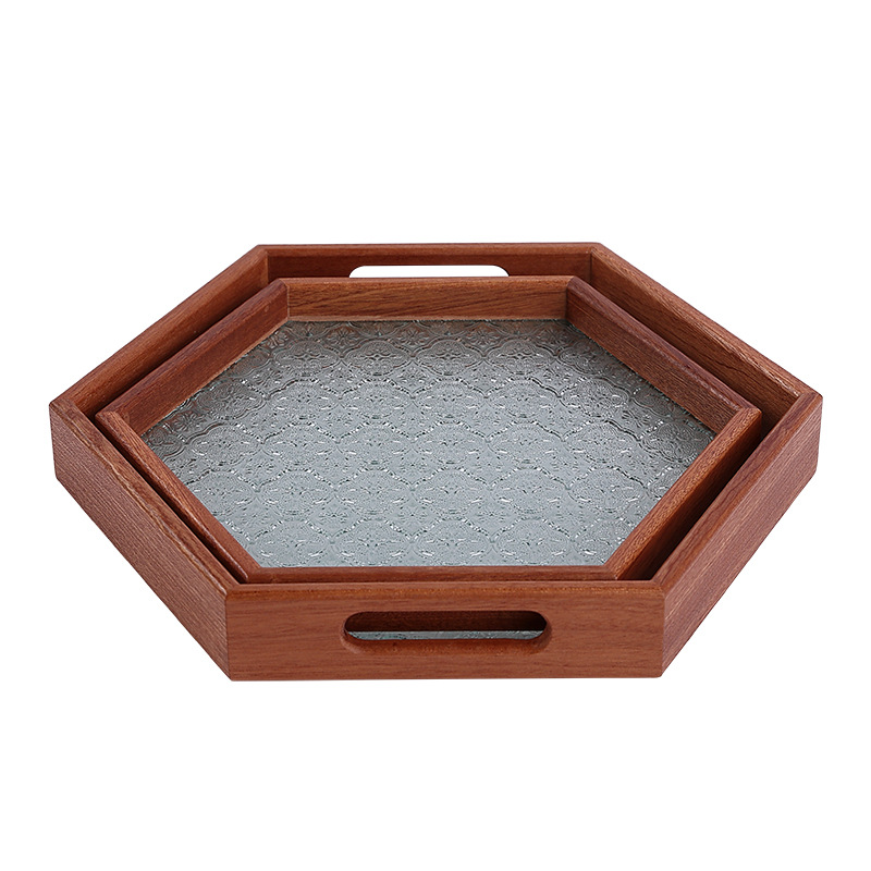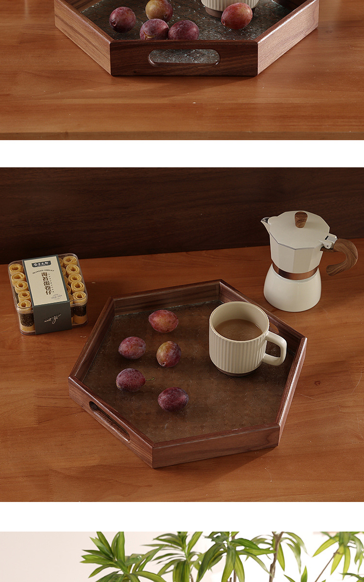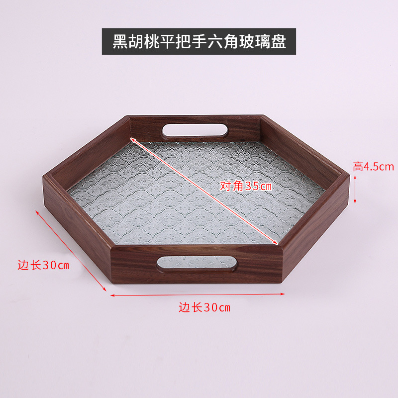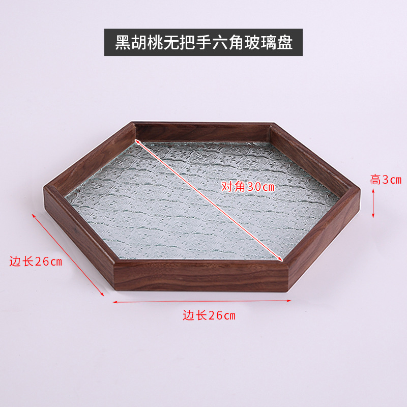 Color: Black walnut hexagonal glass plate large 35*35*4.5