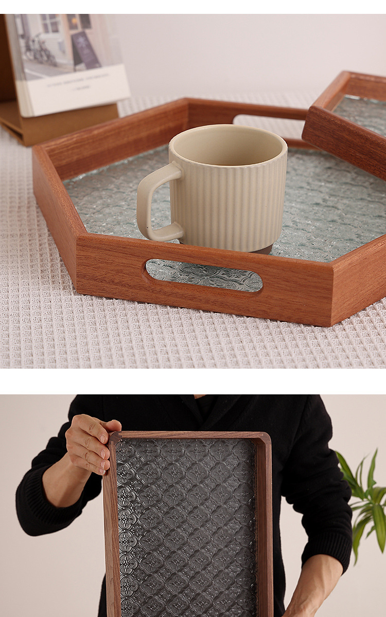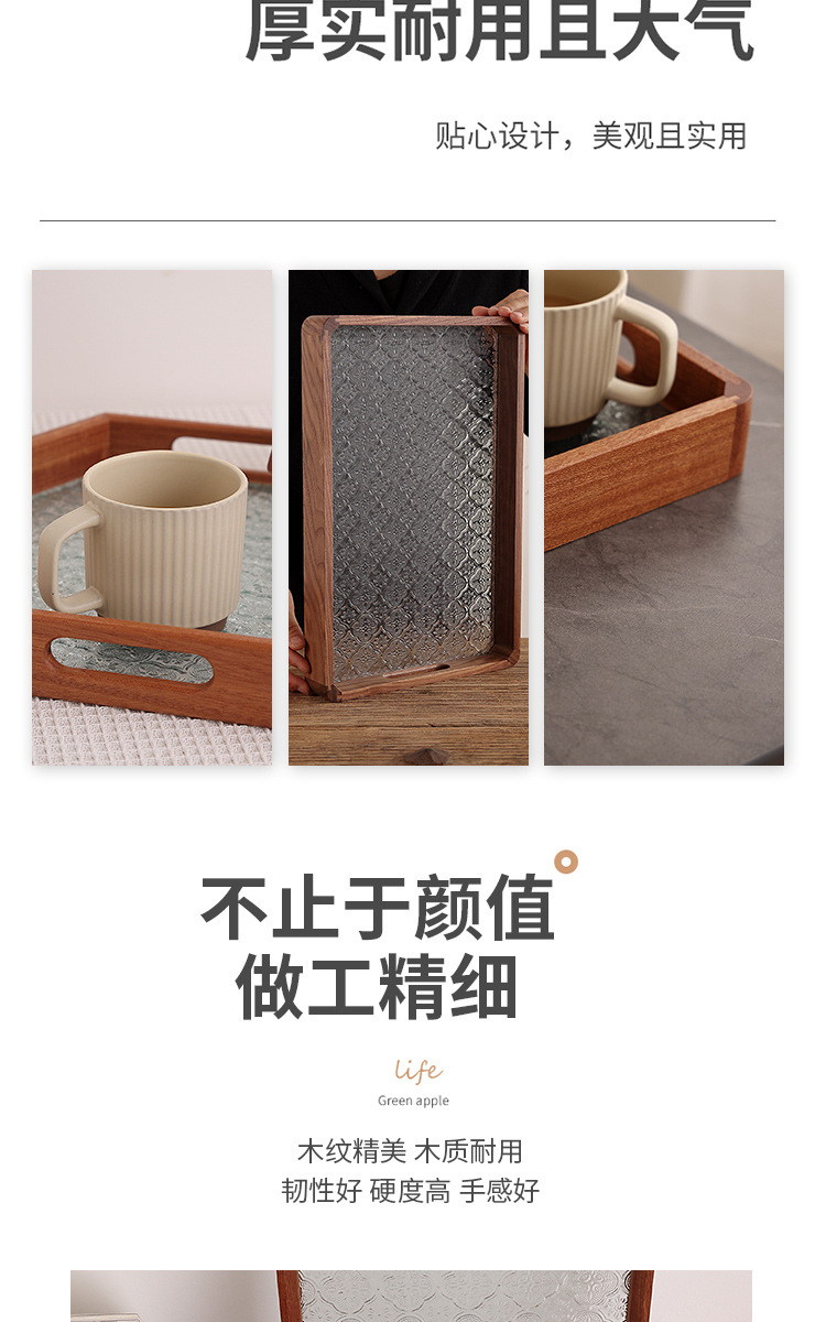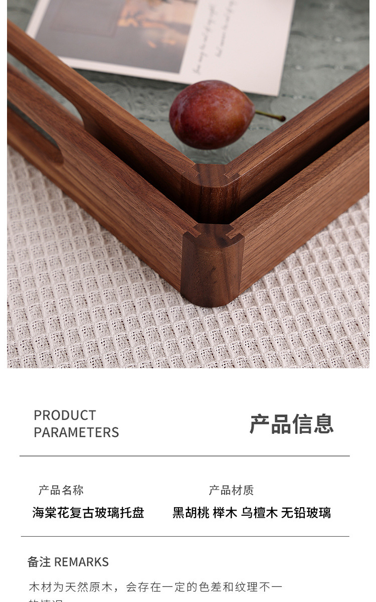 Color: Black walnut flat handle large glass plate 45*30*4.5