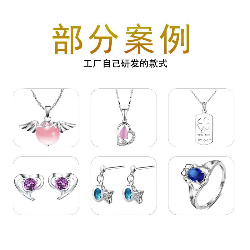 我们所加工的产品,涵盖:耳饰、吊坠、项链、手链、戒指、脚链等小饰品。暂不接受手镯、锁包、摆件等大件货品。目前我们工厂只生产加工925以及千足银的产品
