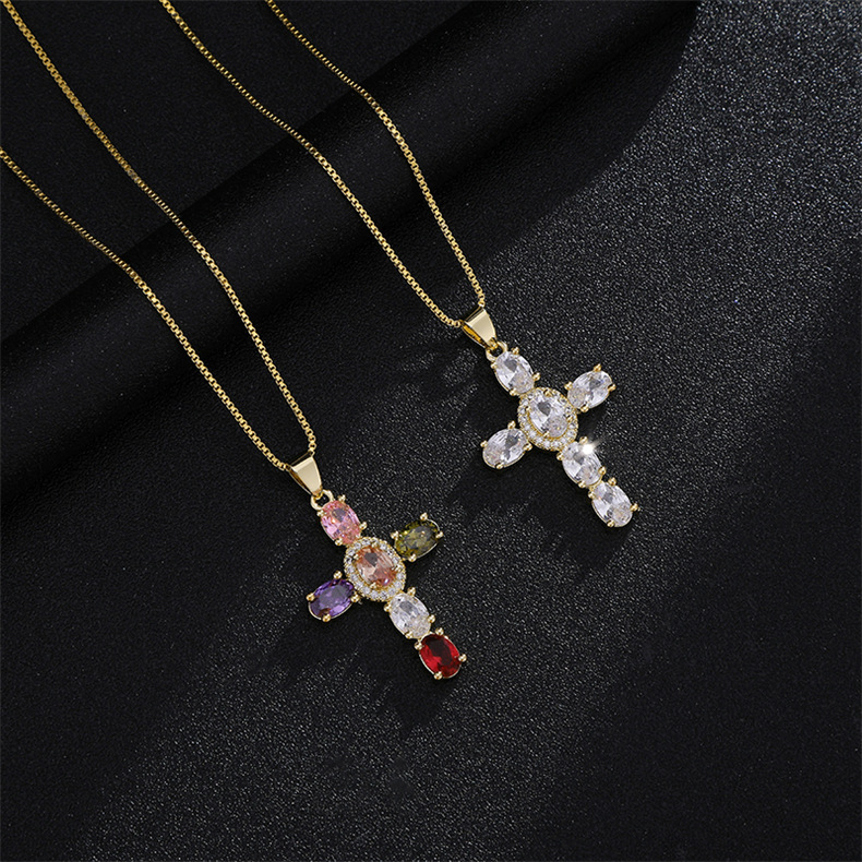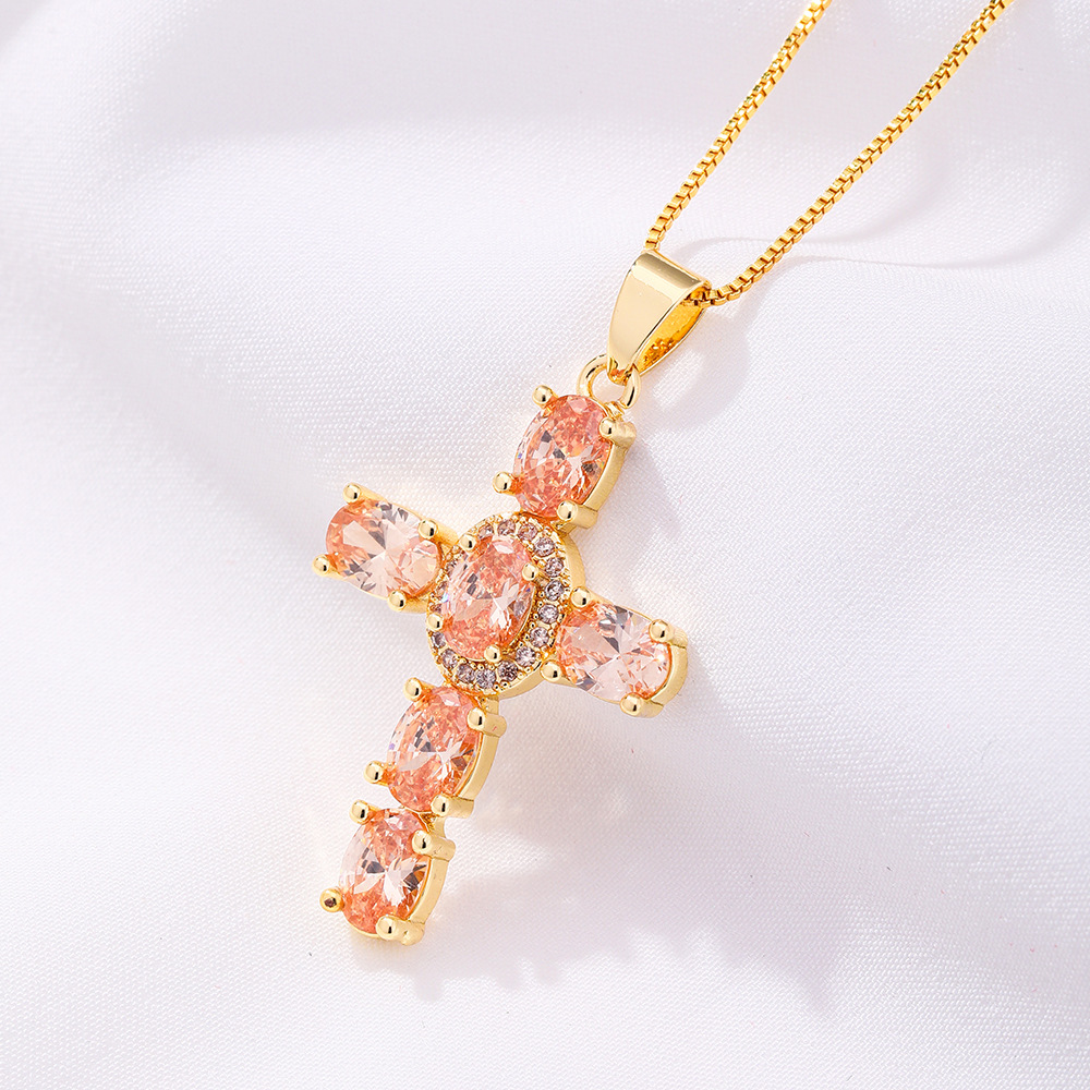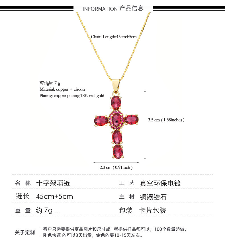 Cross Necklace Copper Micro-inlaid Zircon Design Fashionable Cyber Red Flash Diamond Personality Clavicle Chain Popular Jewelry