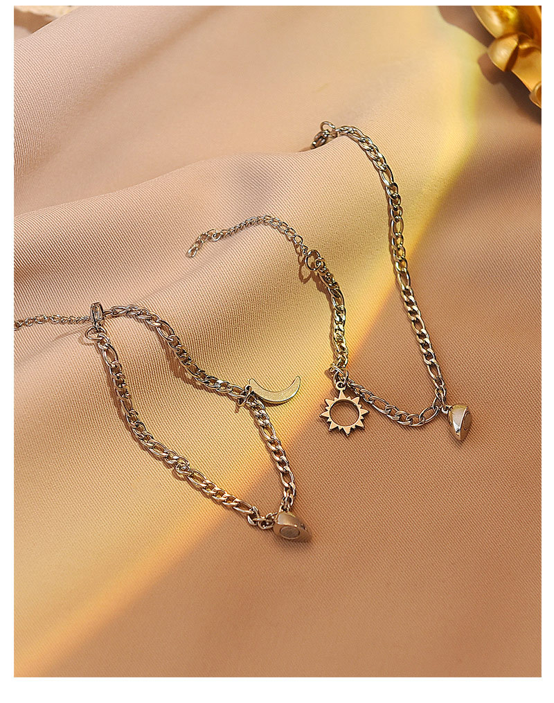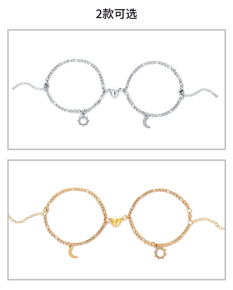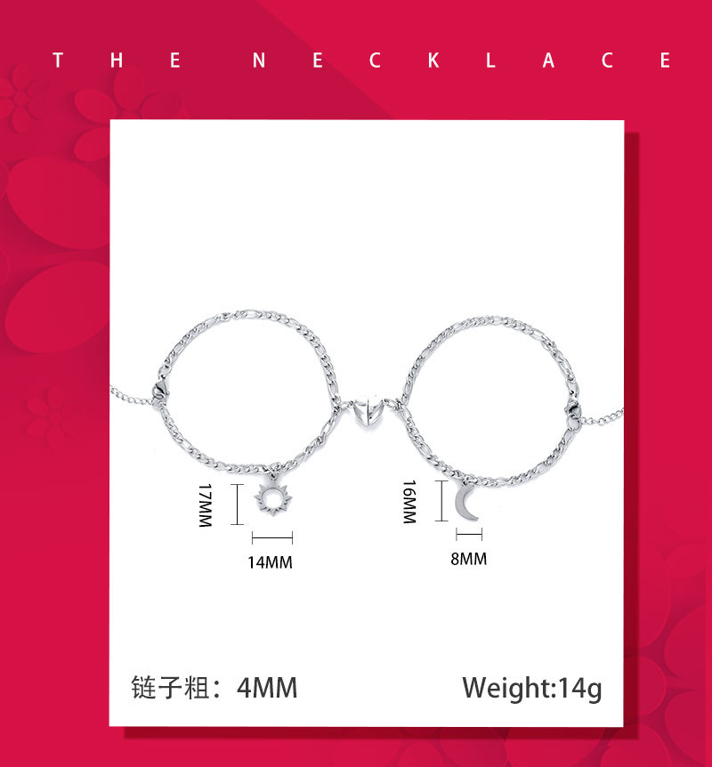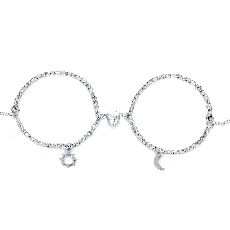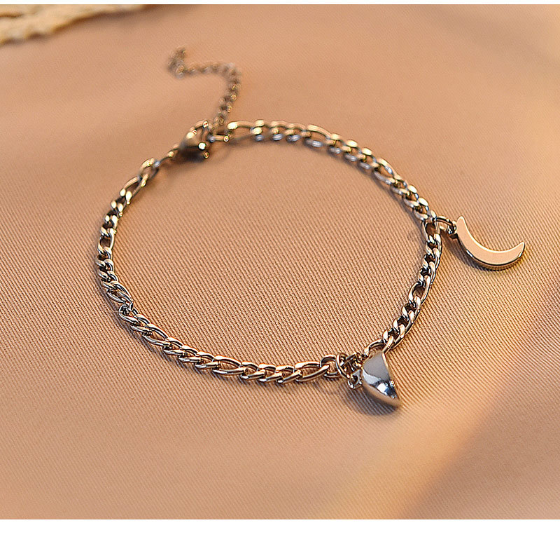 Retro Style Stainless Steel Sun and Moon Heart-Shaped Magnetic Buckle Attraction Pendant Couple Best Friend Titanium Steel Bracelet Ins Style
