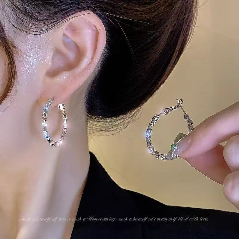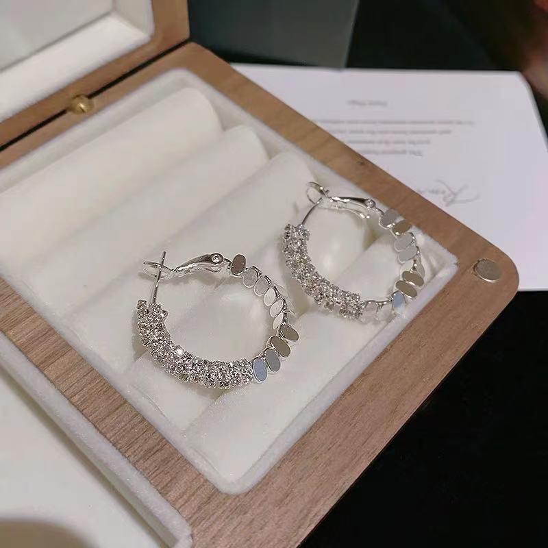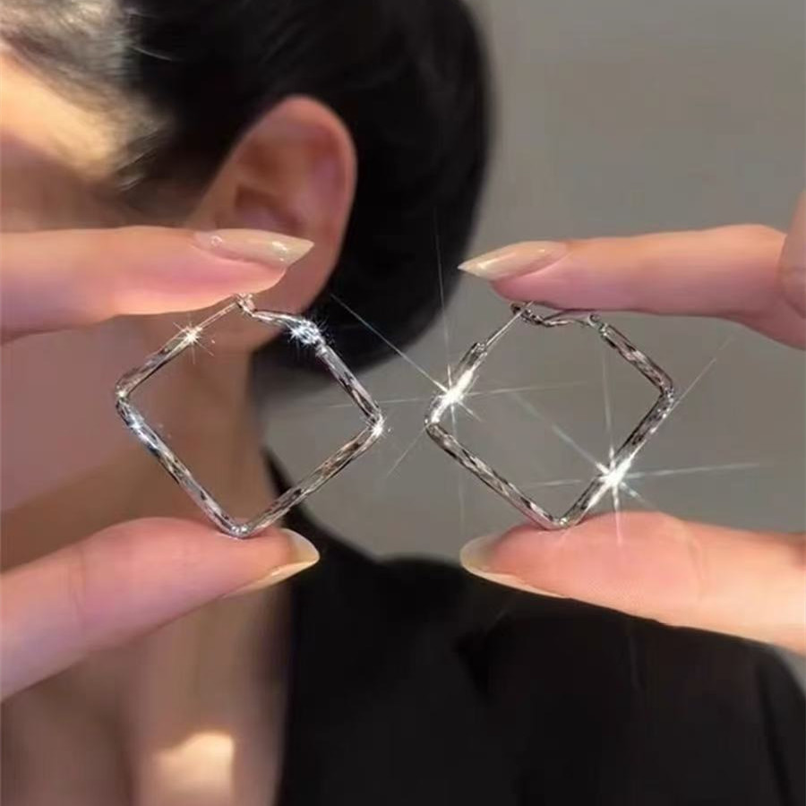 Color: Rectangular dense diamond zircon silver earrings (2cm)