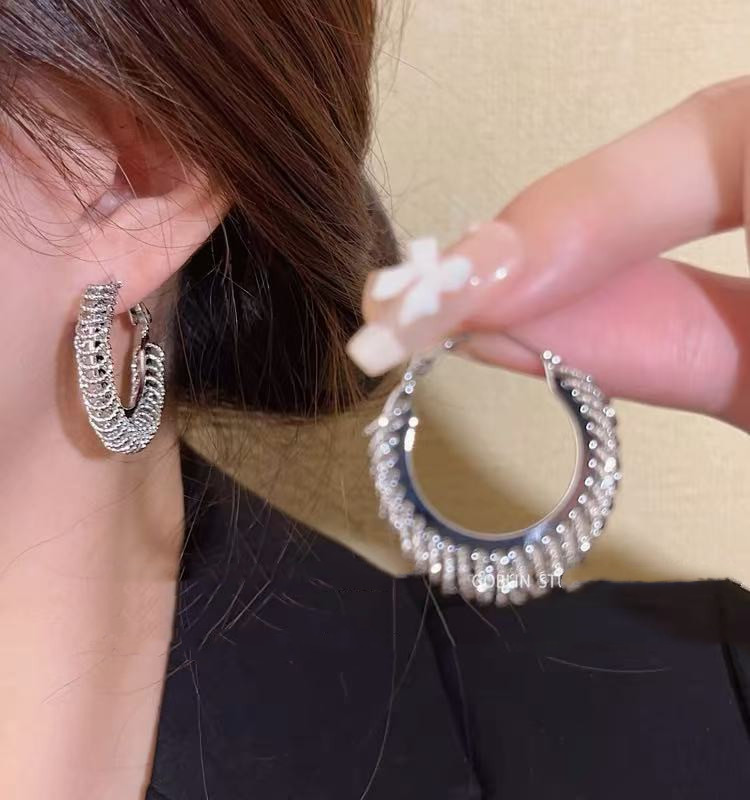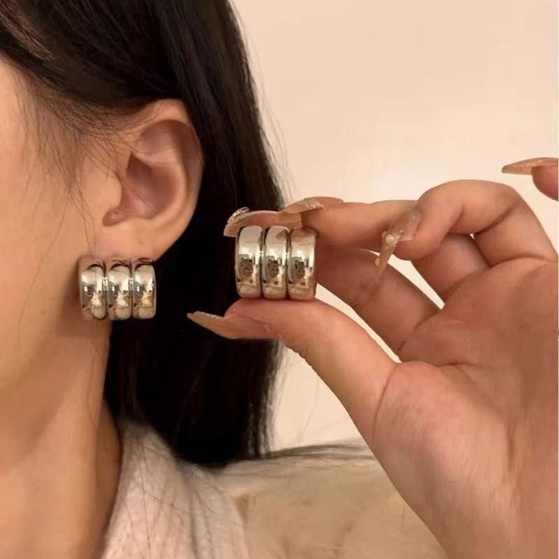 Color: Three-layer multi-faceted ball silver earrings (2cm)