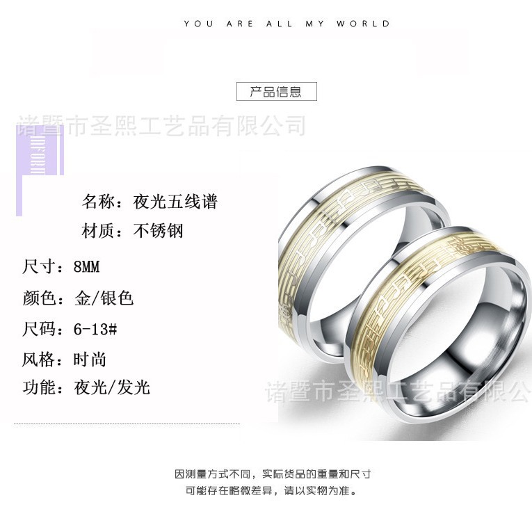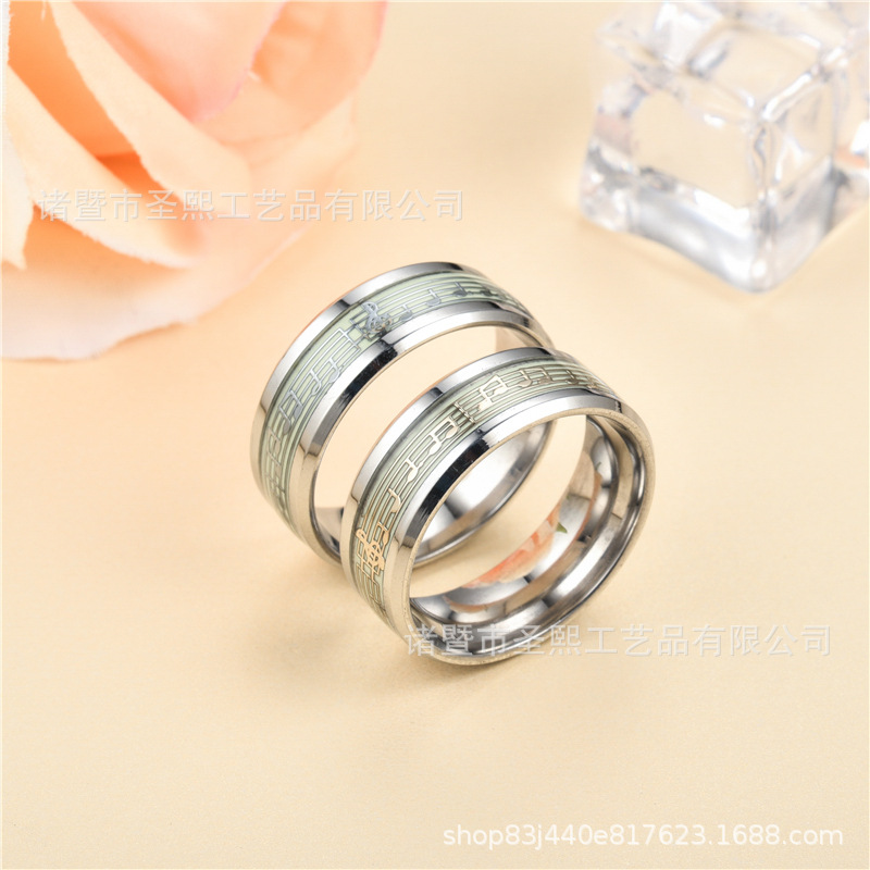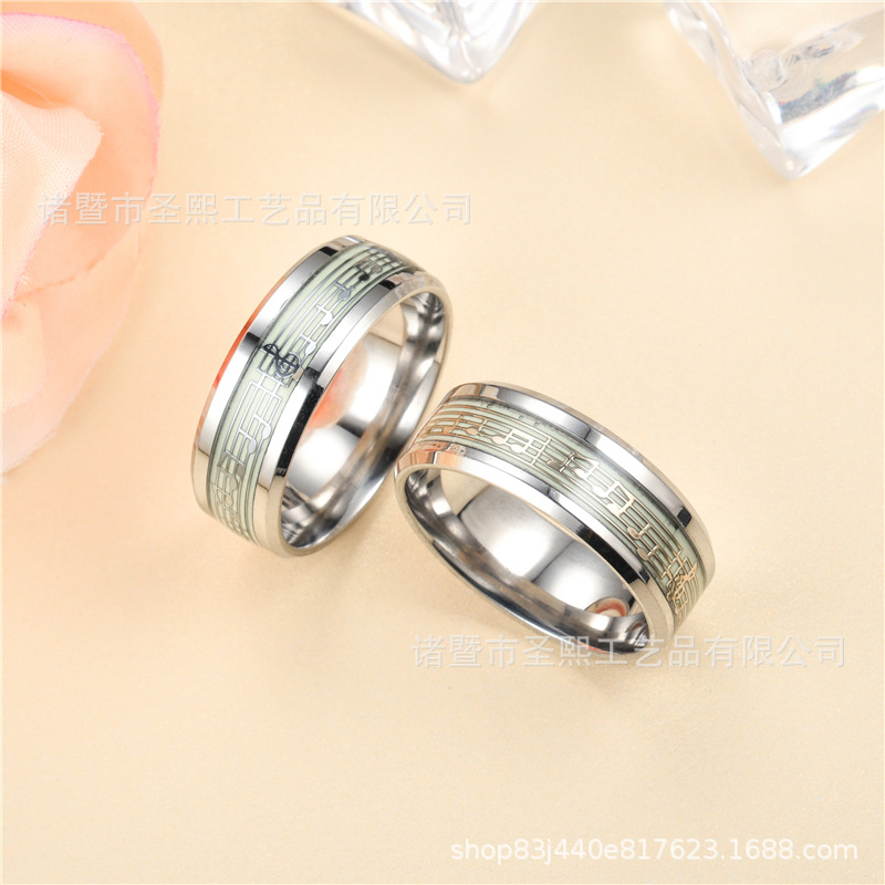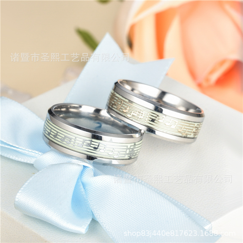 Shengxi Cross-Border Simple and Fashionable Trendy Ring, Luminous Fluorescent Ring, Personalized Jewelry, Glowing Ring, Steel-Colored Musical Note