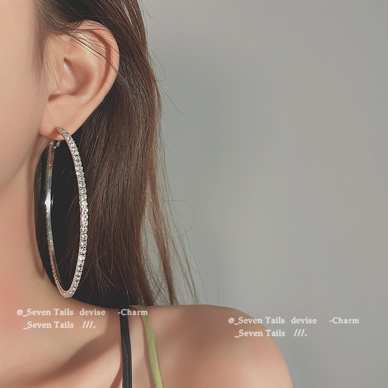 European and American Style Street Style Catwalk Diamond Large Earrings Female Popular Stylish Exaggerated Earrings Korean Fashion Ear Jewelry