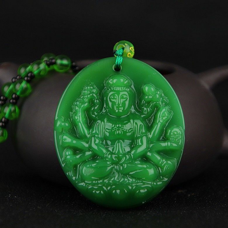 Color: B90 dark green sleeping buddha + dark green ball chain