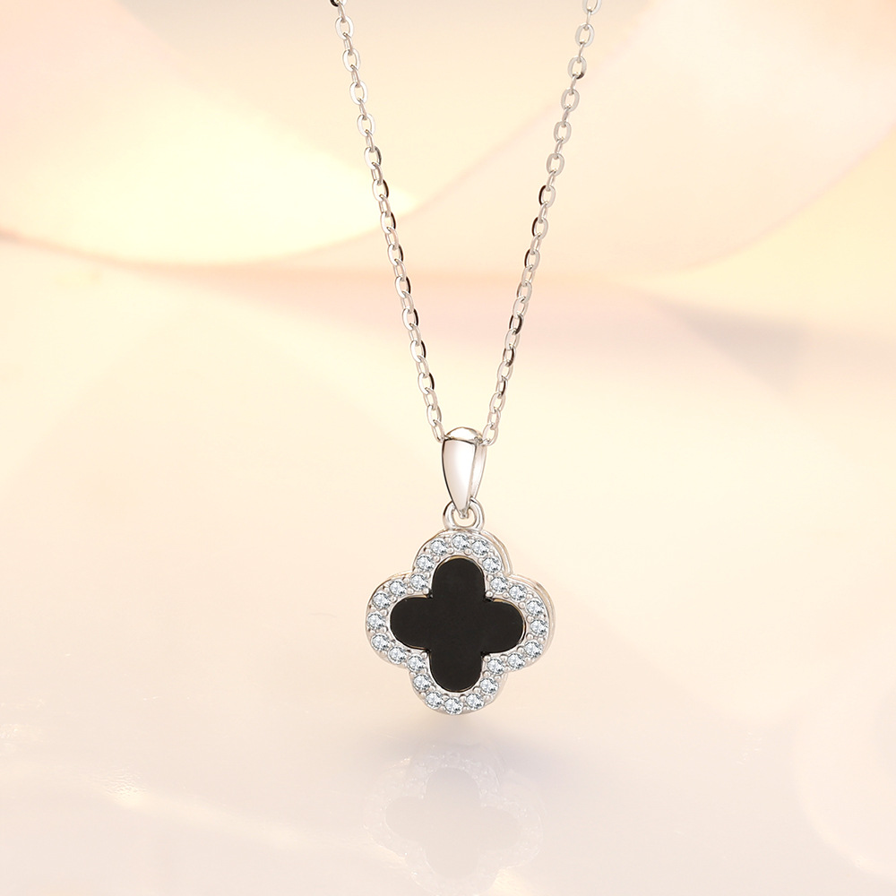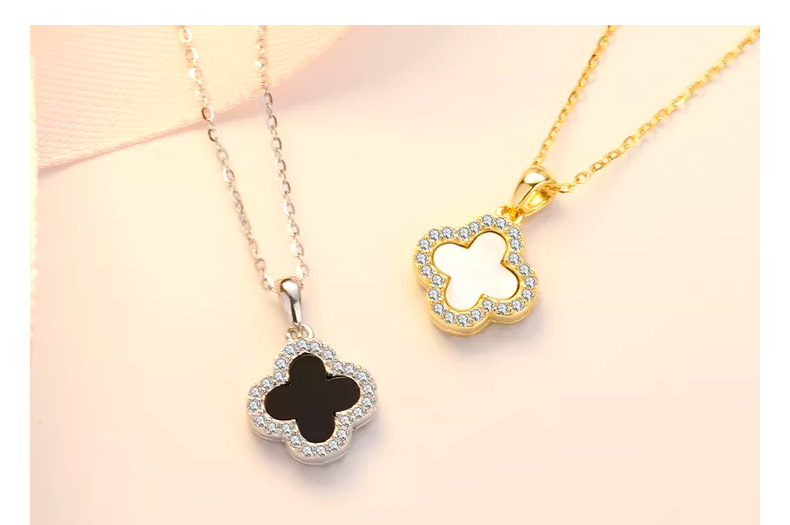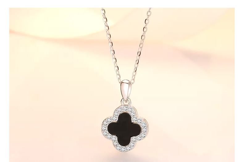 Color: XL0064 four-leaf clover black and white double-sided necklace cross chain (White Gold)
