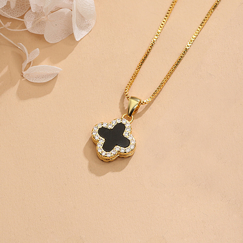 Color: XL0064 four-leaf clover black and white double-sided necklace box chain (gold color)