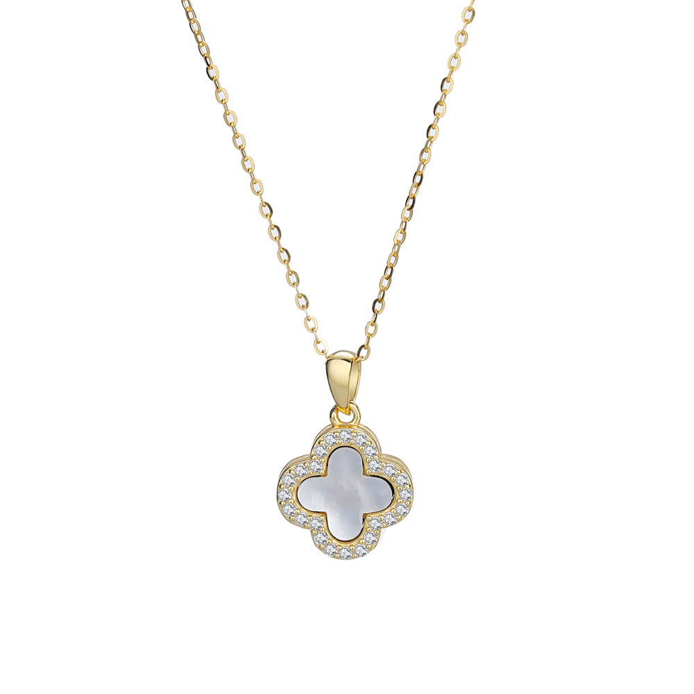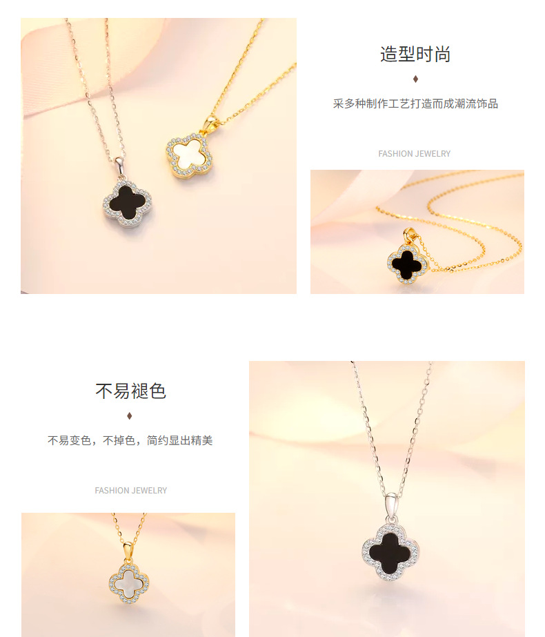 Color: XL0064 four-leaf clover black and white double-sided necklace cross chain (gold color)