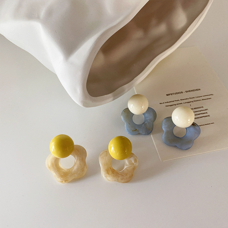 Super Fairy Color Contrast Resin Flower Earrings Women's Korean-style Simple All-match Elegant Fashion Acrylic Earrings Earrings