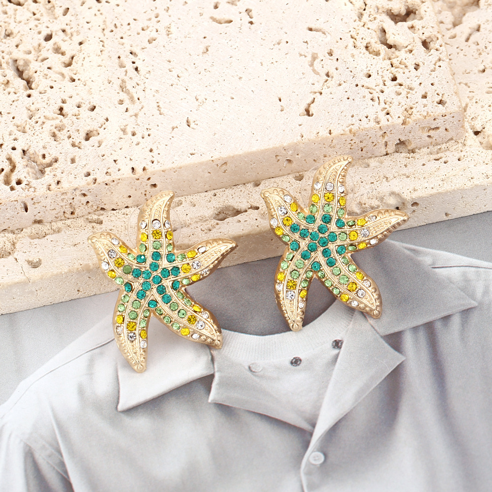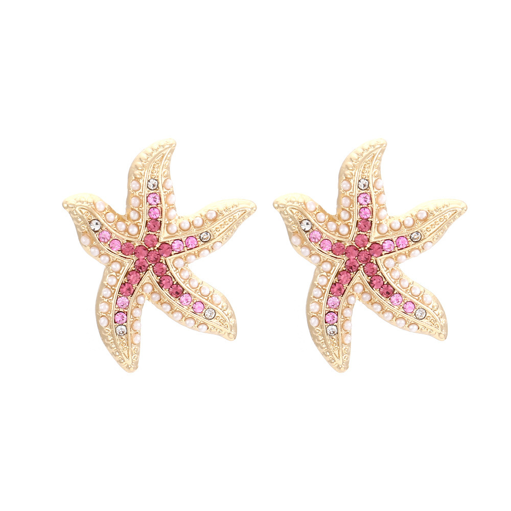 European and American Personalized Star Design Fashion Trend Creative Cute Exaggerated Starfish Colored Diamond Inlaid Pearl Style Women's Earrings