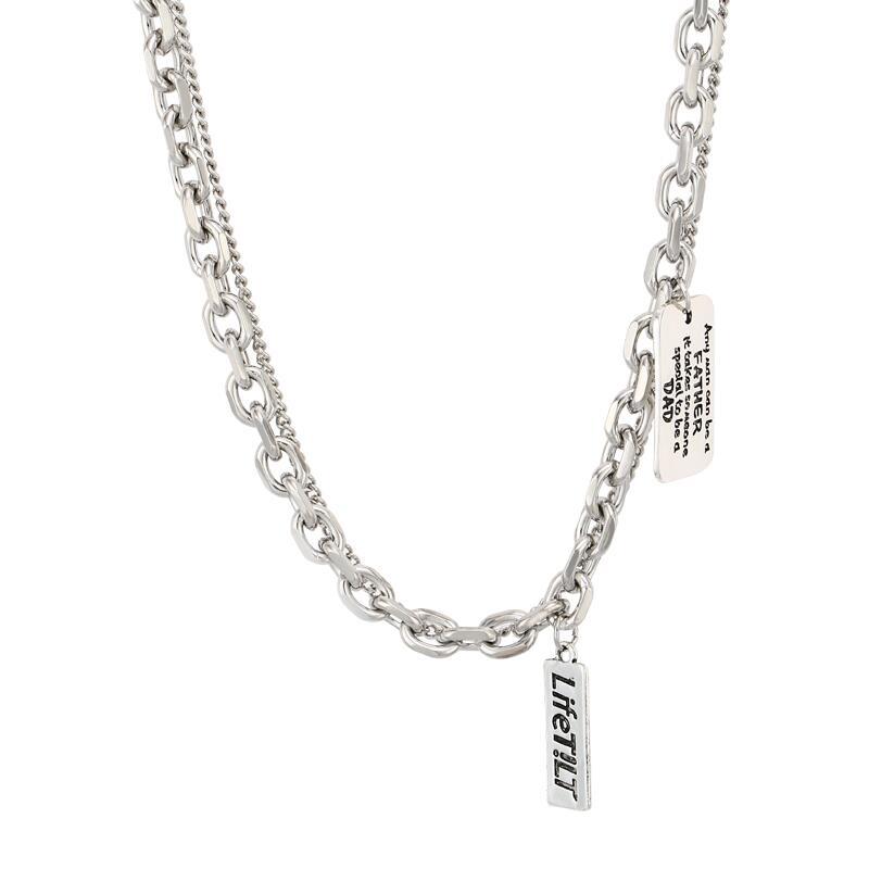Simple Square Brand Pendant Letter Hip-Hop Necklace Women's Summer Cool Style Double Layer Stacked Wear Decorative Collarbone Chain Accessories for Men