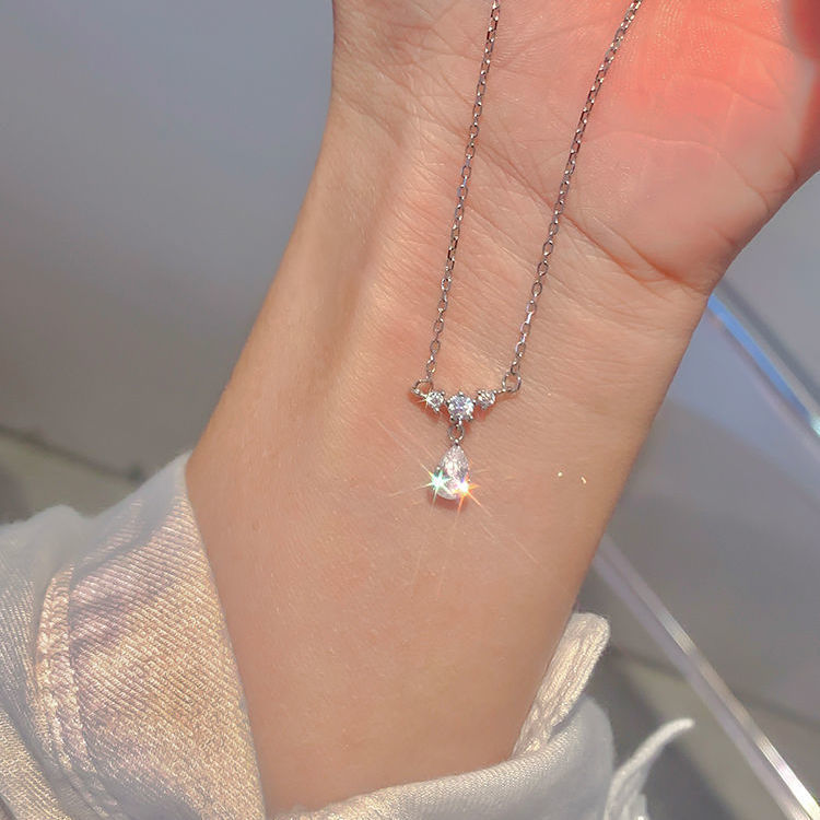 Water Drop Necklace Women's ins Color-Free Light Luxury Niche Design Advanced Feeling Temperament Gentle Fairy Style Best Friend Clavicle Chain