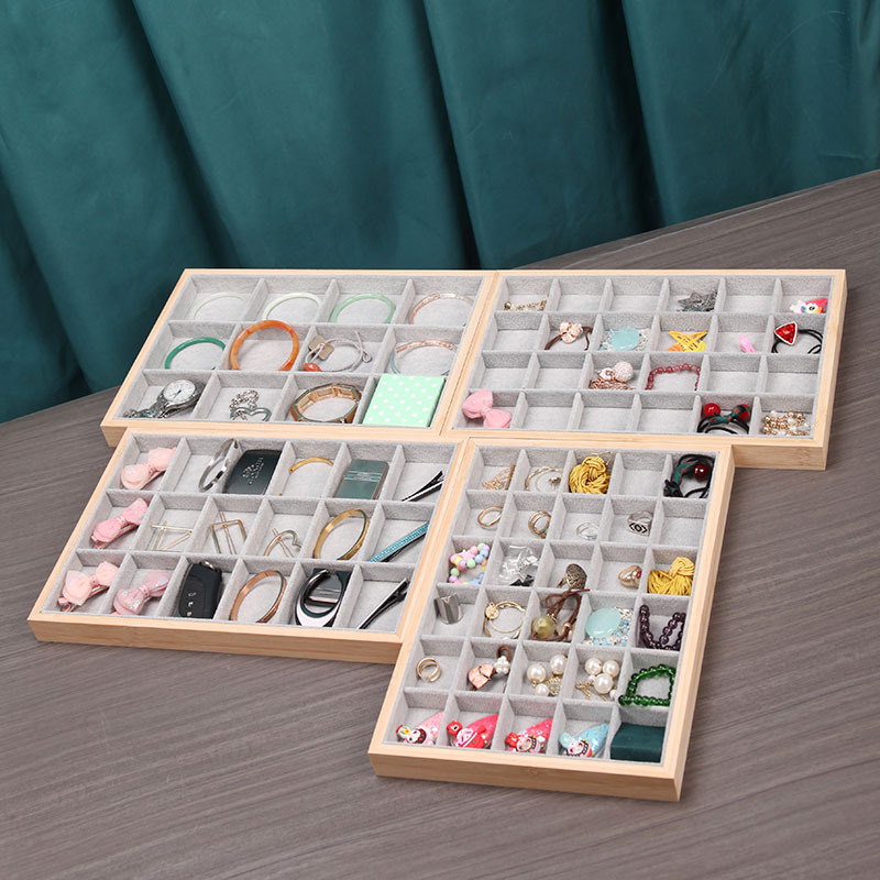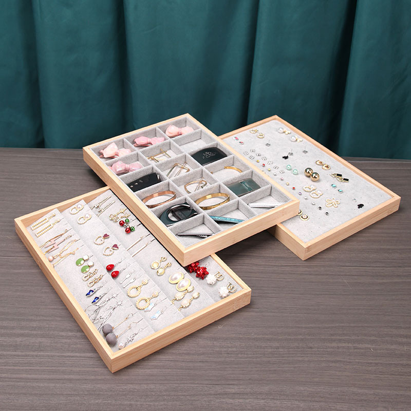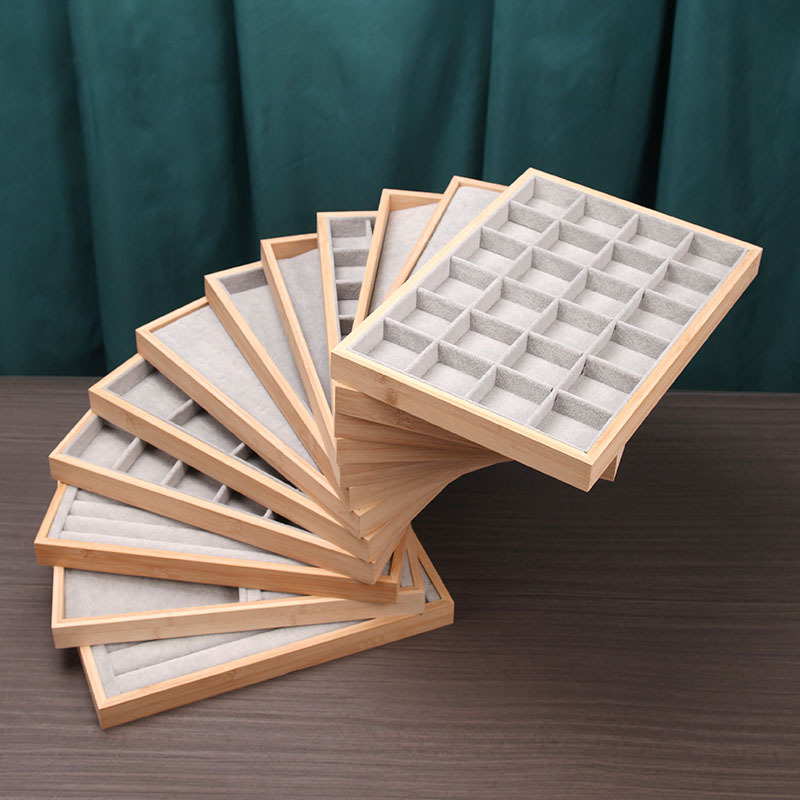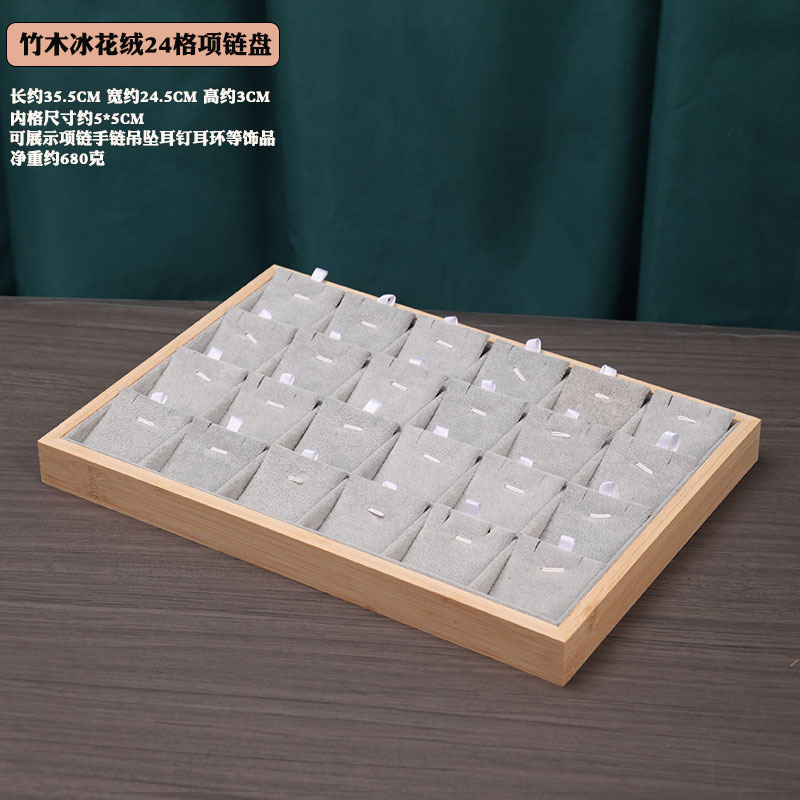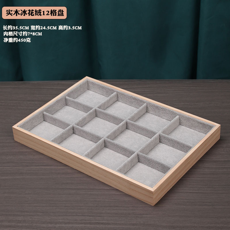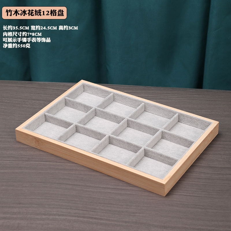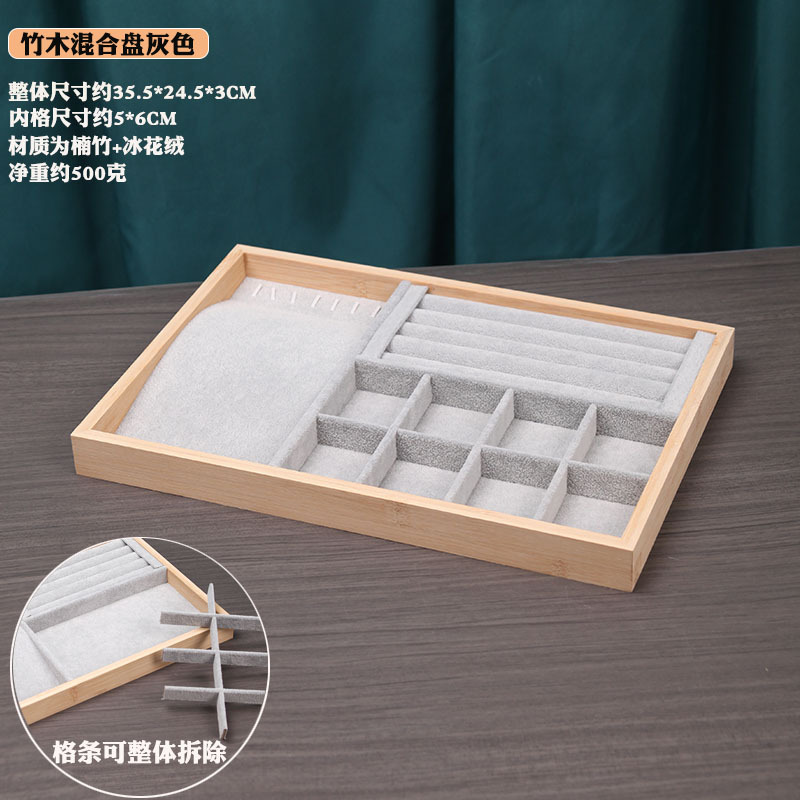 Ice Velvet gray solid wood bamboo wood jewelry plate ring earrings necklace pendant bracelet watch jewelry tray