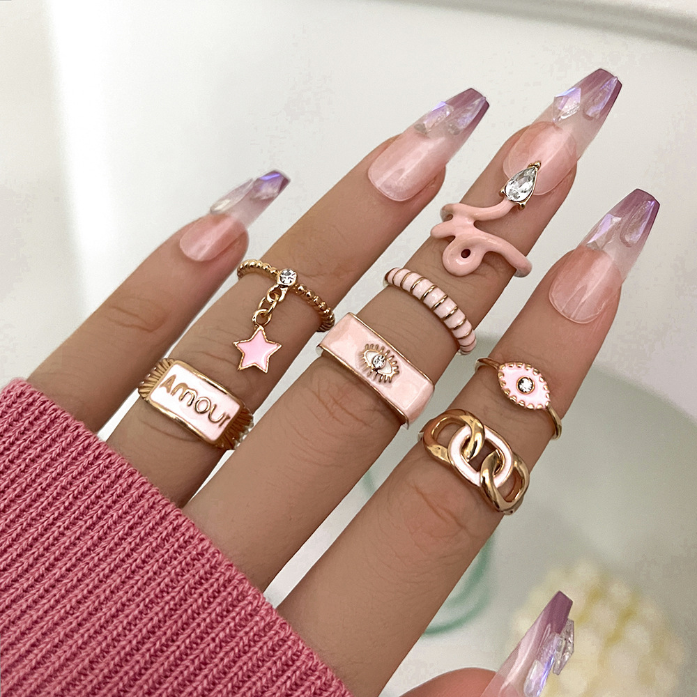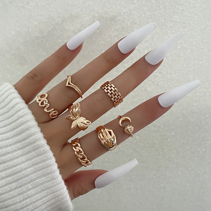 • 产品名称:外波西米亚风镂空花朵套装戒指简约光面树叶藤蔓仿珍珠戒指10件套