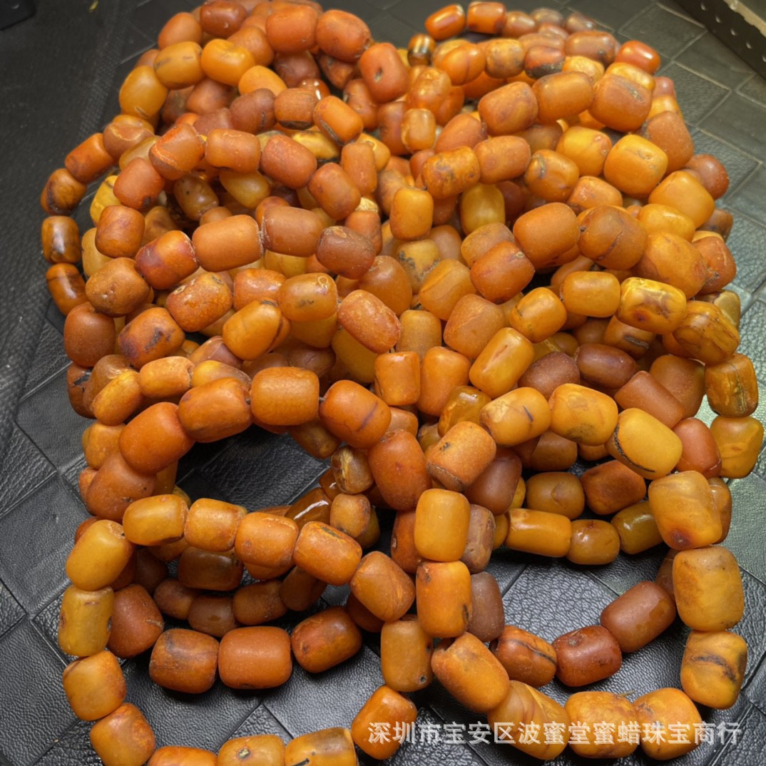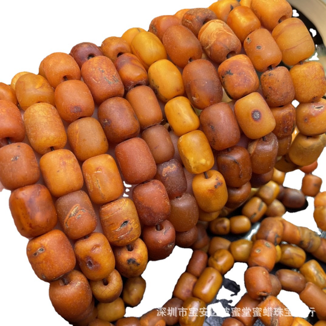 Songgang factory Amber old beeswax barrel beads bracelet good quality chicken oil Red weathering pattern clear cost-effective