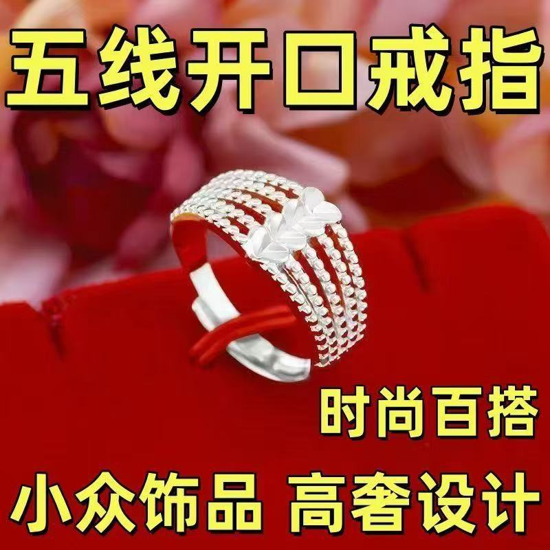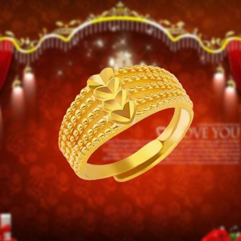 High imitation gold-plated silver-plated ring women's love five-line transfer adjustable golden ring gift for wife