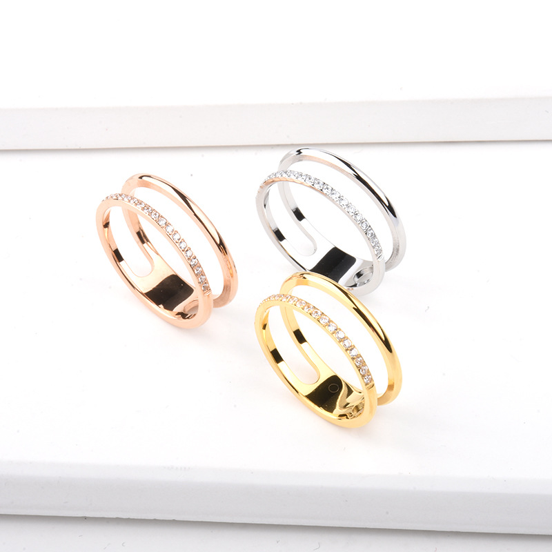 Micro-Encrusted Diamond J4-103 Cut Out Double-Layer 20 Couple Rings Korean Style Fashionable Titanium Steel Rose Gold-Plated Index Finger Ring
