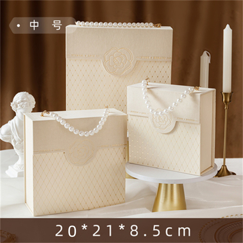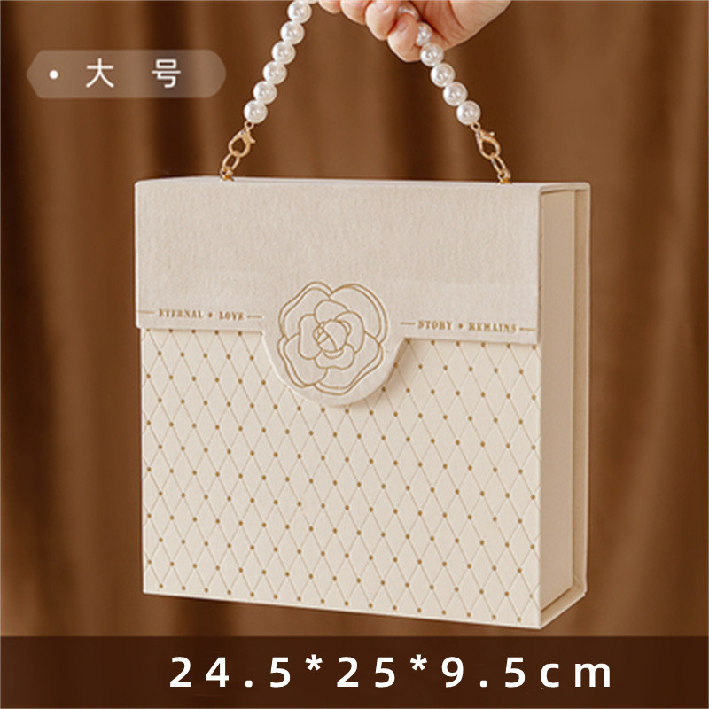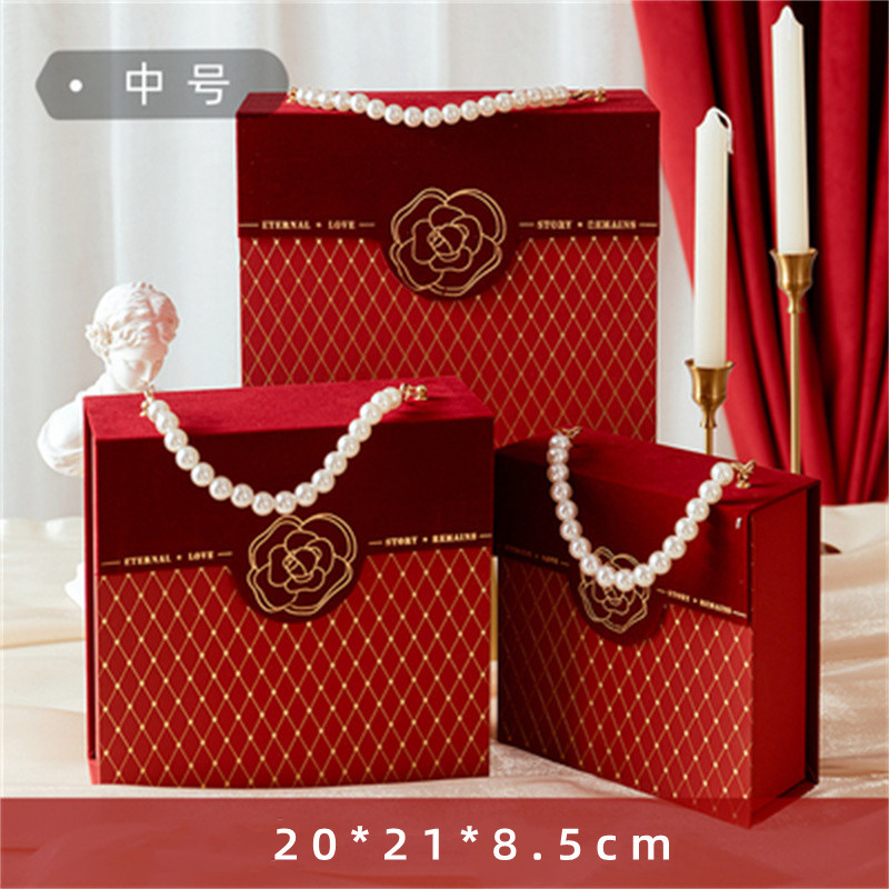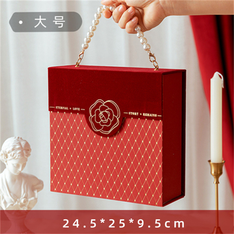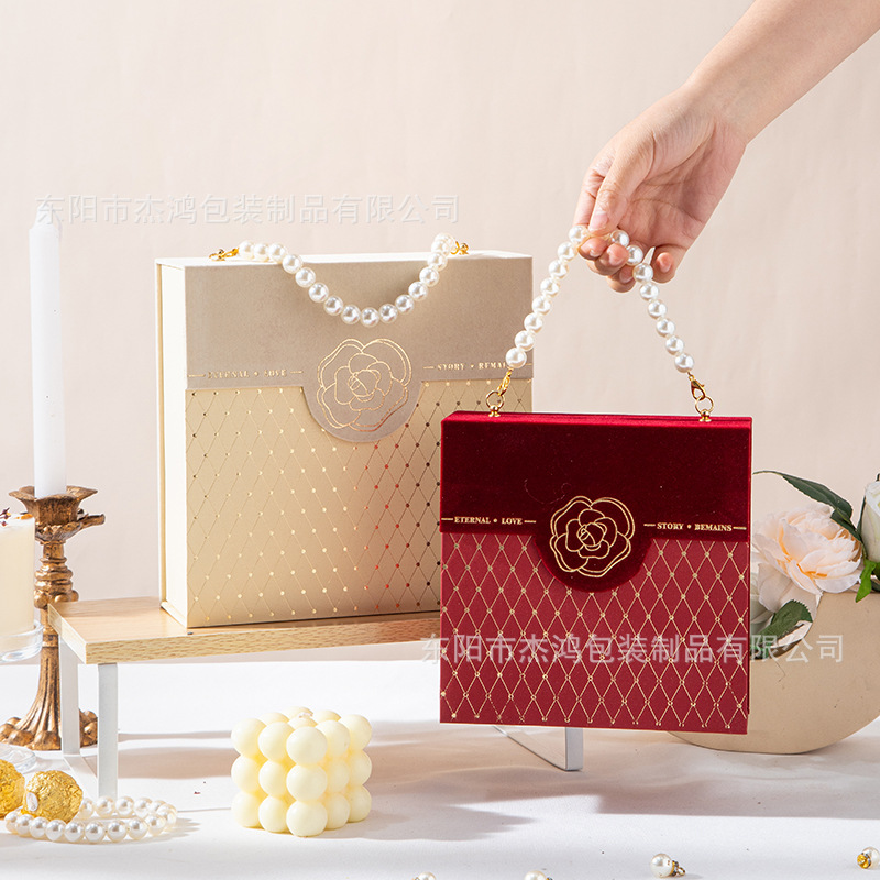 Camellia Love Wedding Candy Box Small Fragrance Style Pearl Handbag Box Little Red Book Same Style Velvet Gift Box Empty Box Gift Box