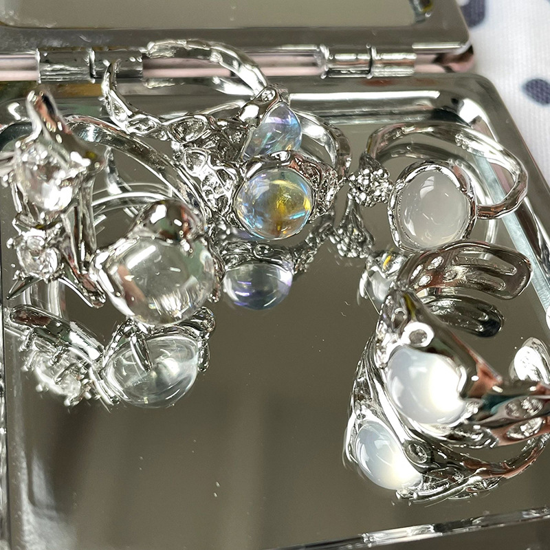 [Fantasy Ring Traceup] French Personalized Moonstone High-End Open Ring Niche Ins Style Simple Ring for Women