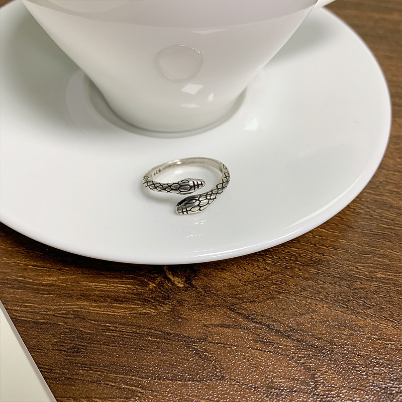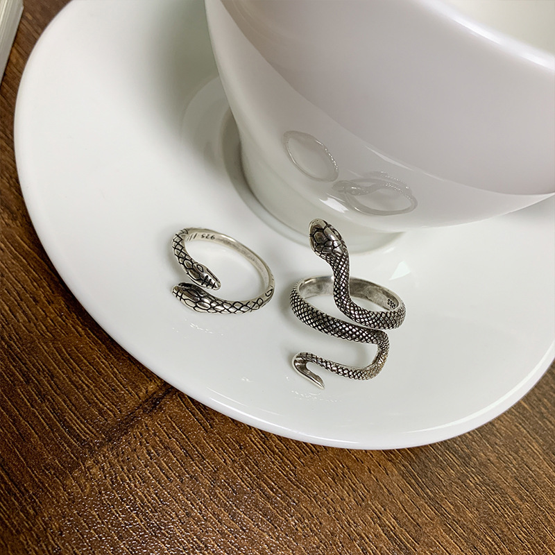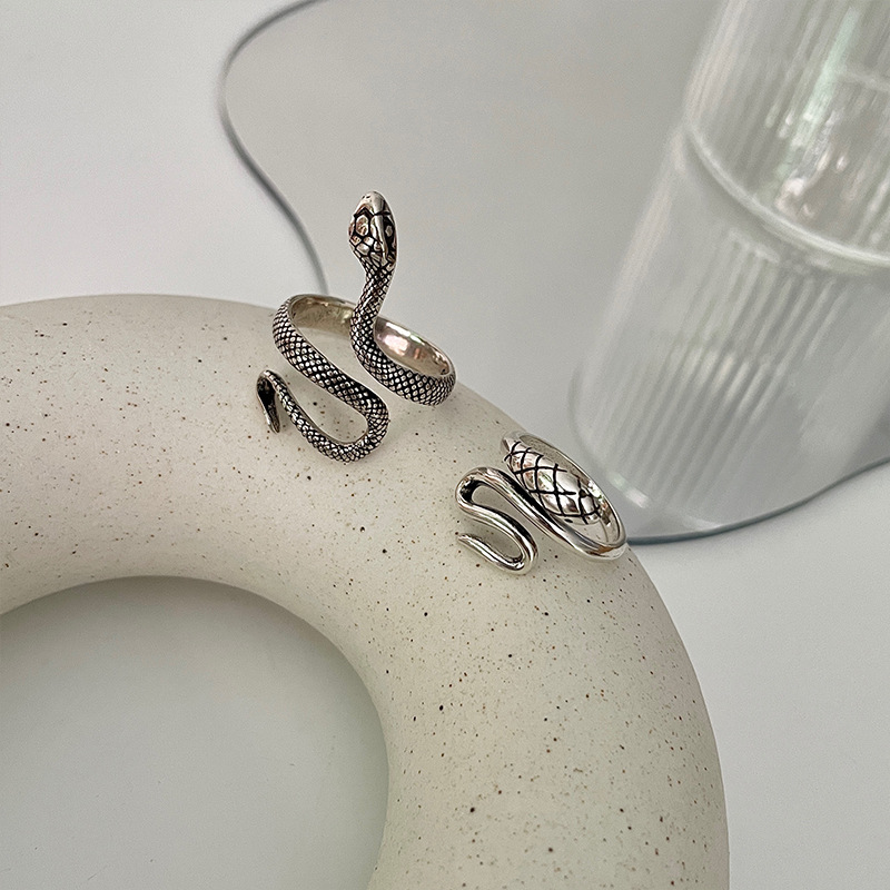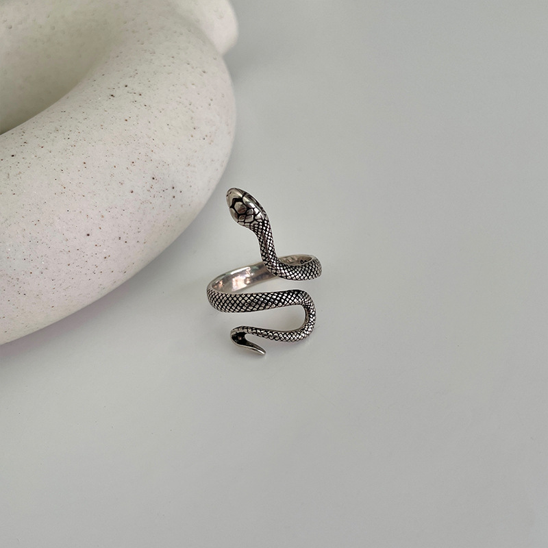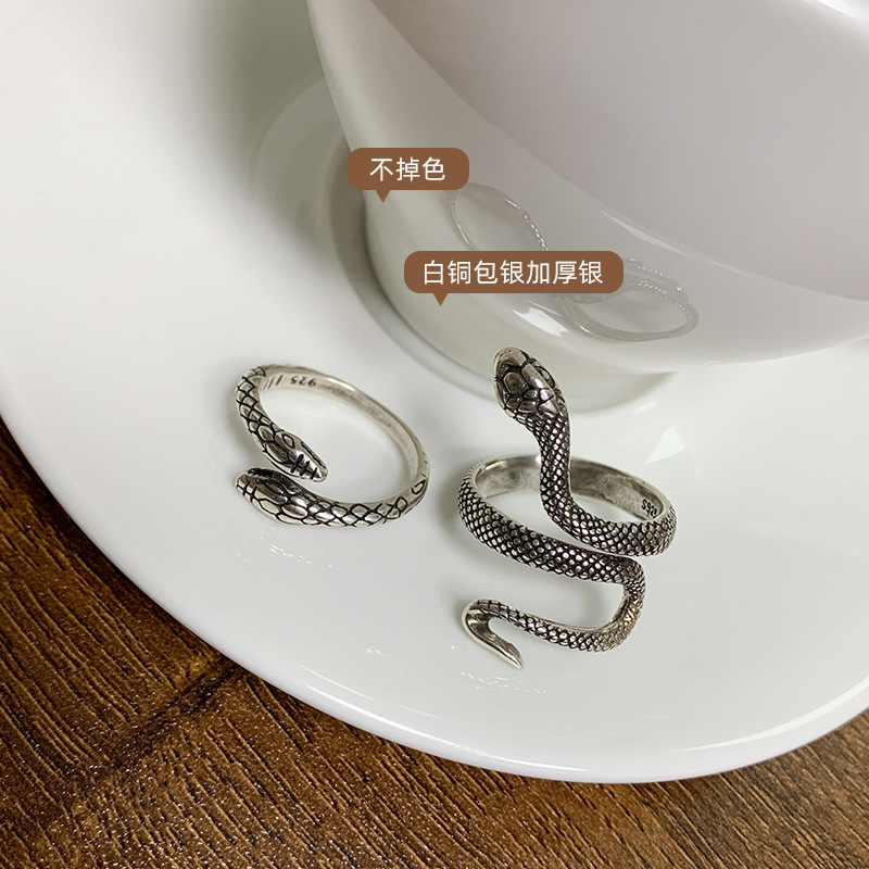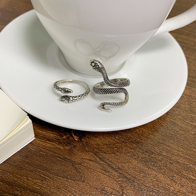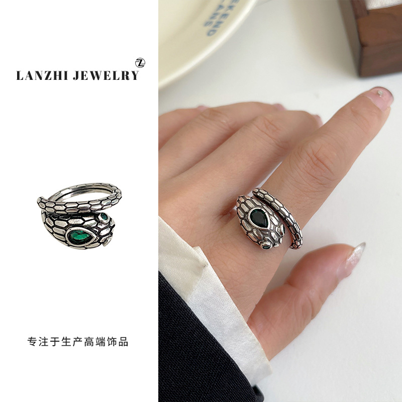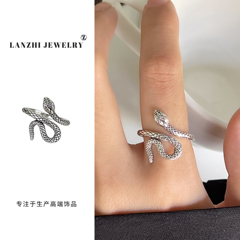 Lan zhi snake retro personality exaggerated European and American jewelry design opening ring 925 sterling silver ring does not fade niche