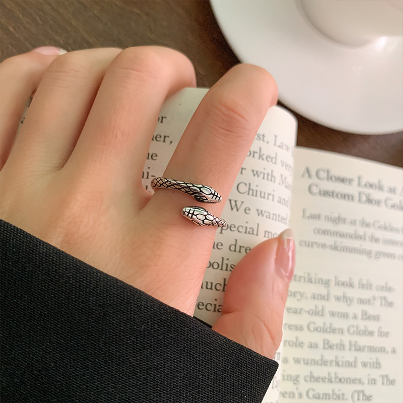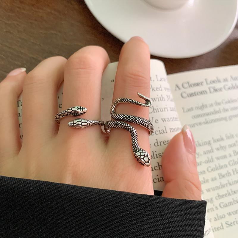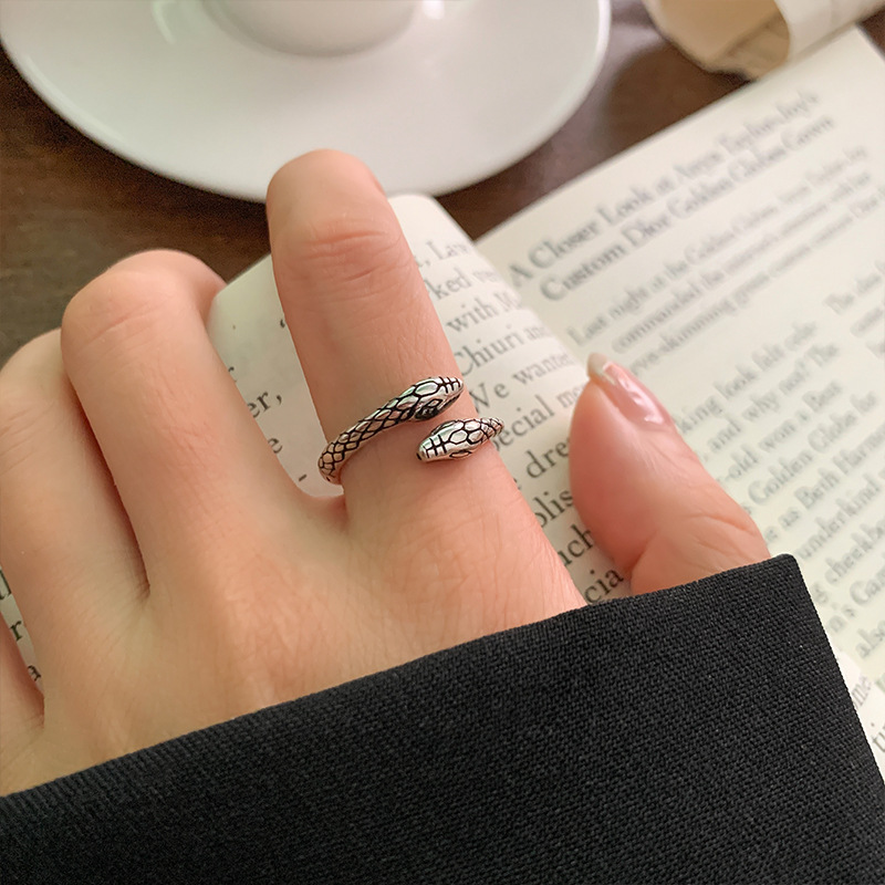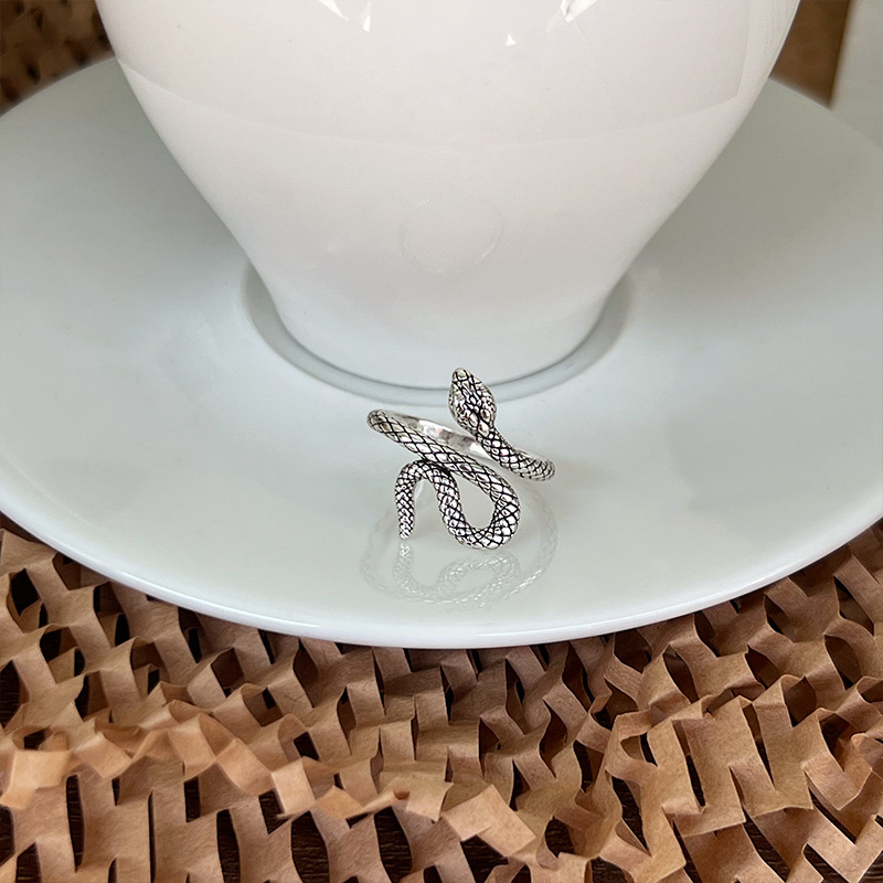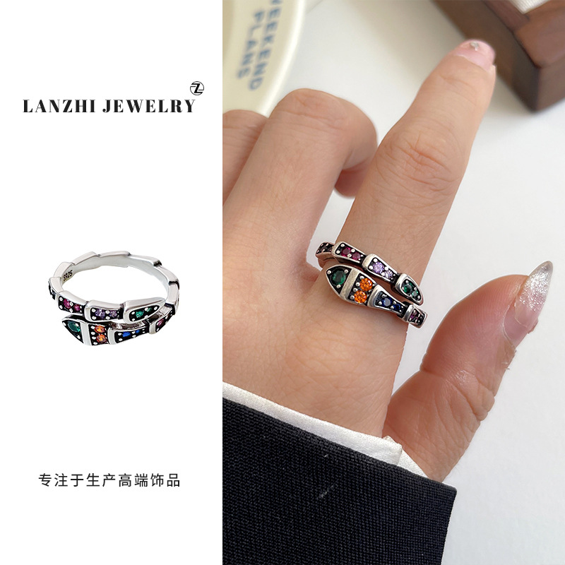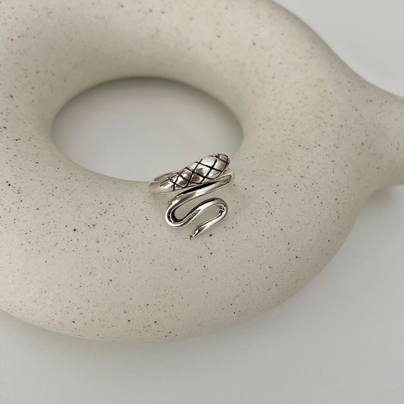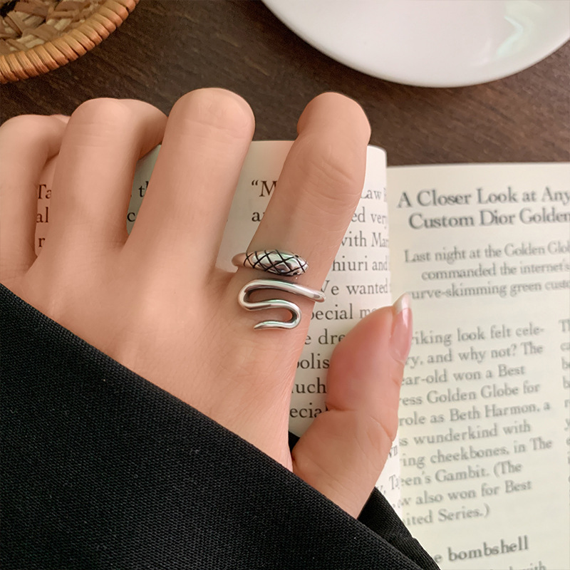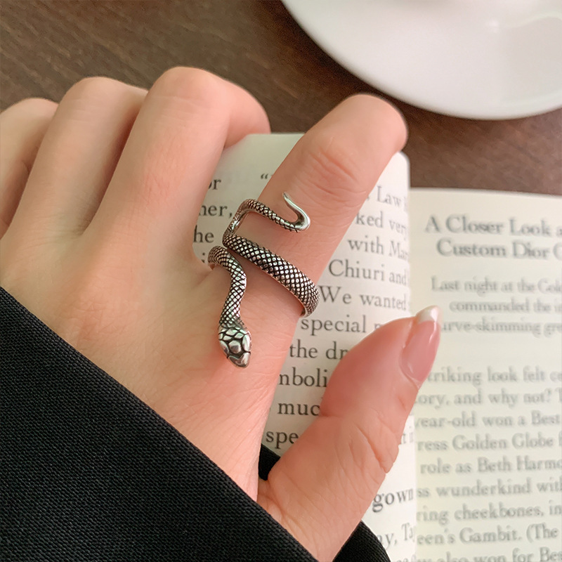 Lan zhi snake retro personality exaggerated European and American jewelry design opening ring 925 sterling silver ring does not fade niche
