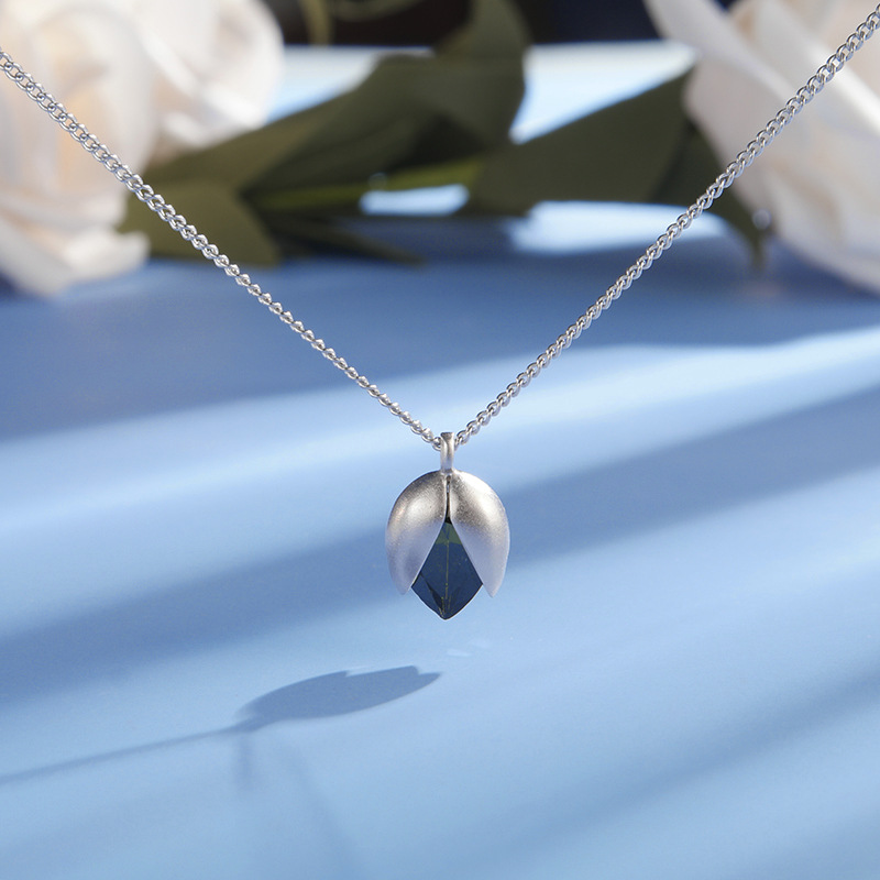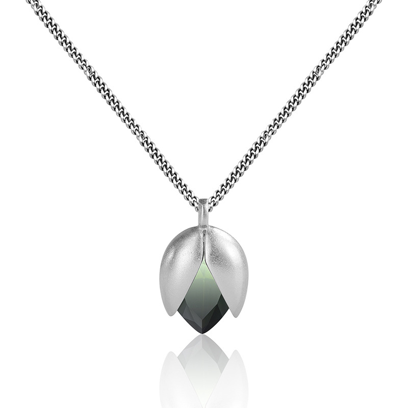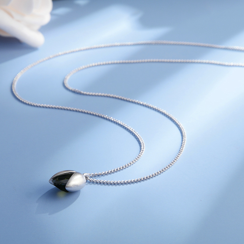 Explosive Pistachio Necklace Women's Green Peridot S925 Silver Pendant Collarbone Chain Korean Style Simple Fashion Girl Jewelry