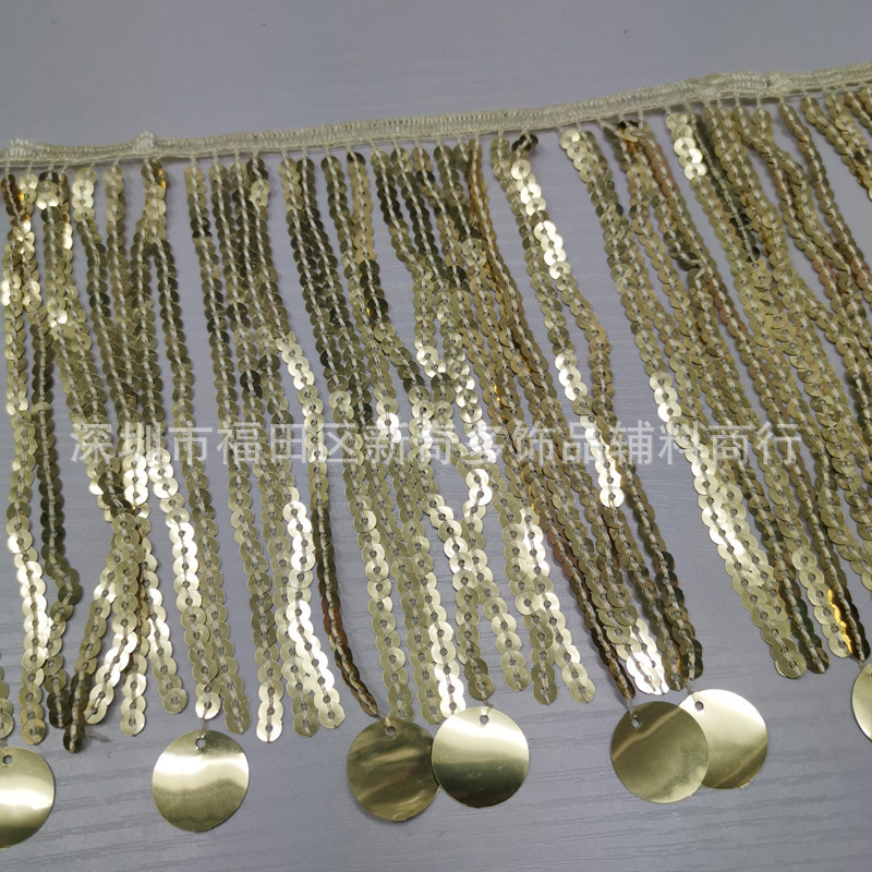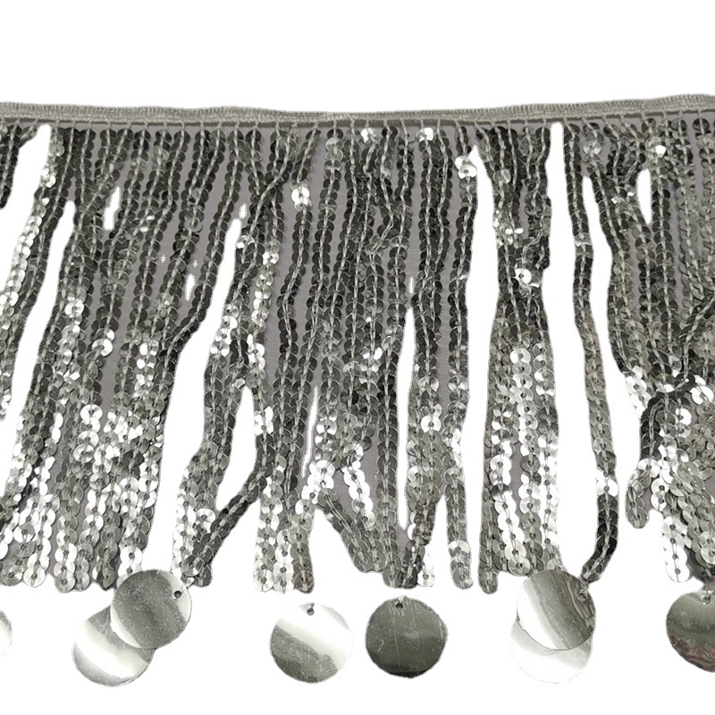 Factory wholesale machine embroidered hanging large disc beads tassel lace mink coat coat accessories curtain lace material