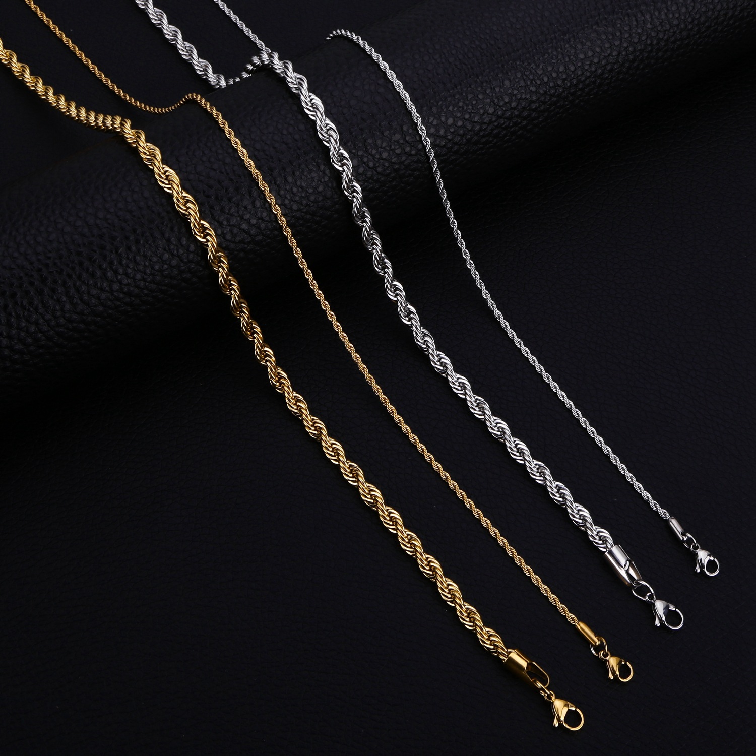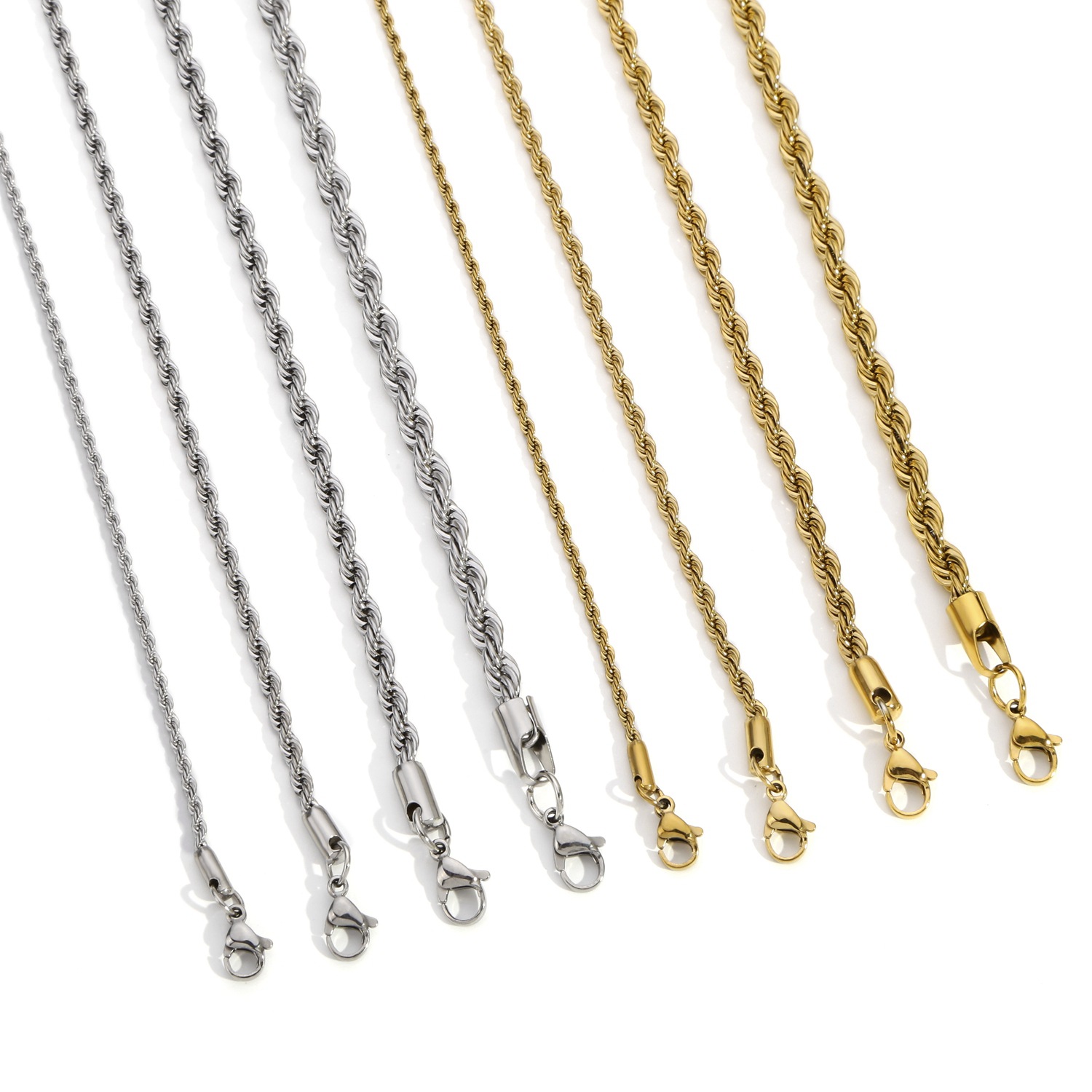 2Mm/3Mm/4Mm/5Mm Twist Chain Gold and Silver Furnace Vacuum Electroplated Necklace Fashion Titanium Steel Jewelry Retro Style
