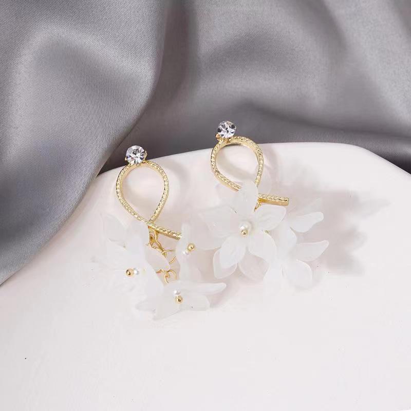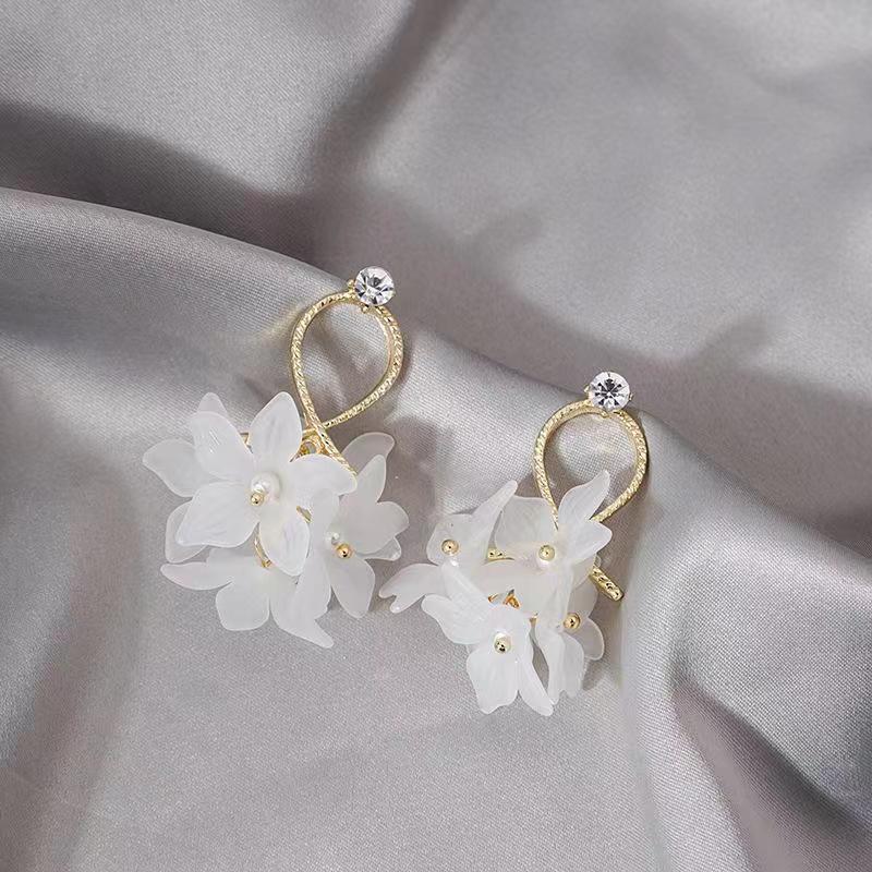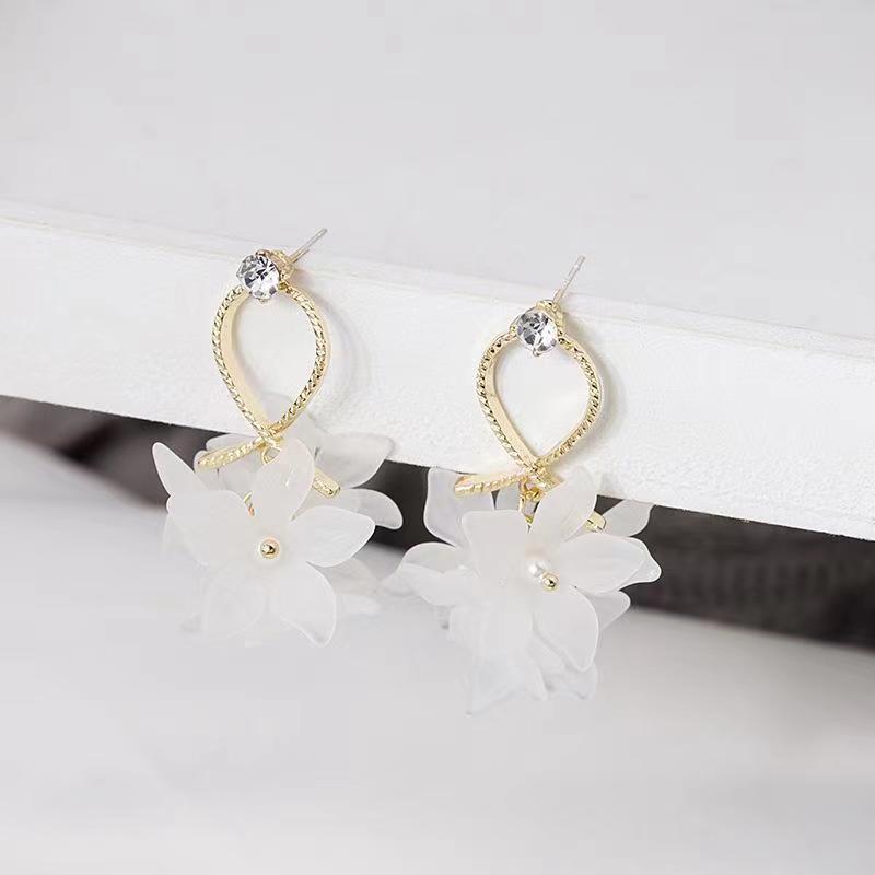 S925 Silver Needle Korean Super Fairy Transparent Petal Earrings Women's New Mori Style Fresh Girl Fashion Geometric Trendy Earrings