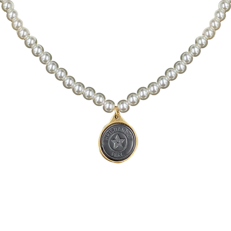 Dijia/D home suit fashion five-pointed star letter open ring necklace Pearl Korean style Internet celebrity TikTok hot sale
